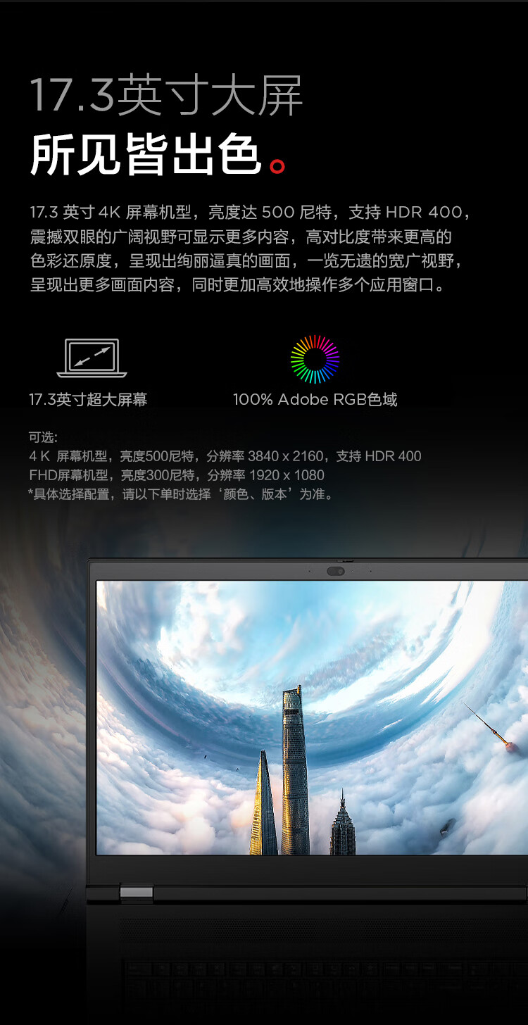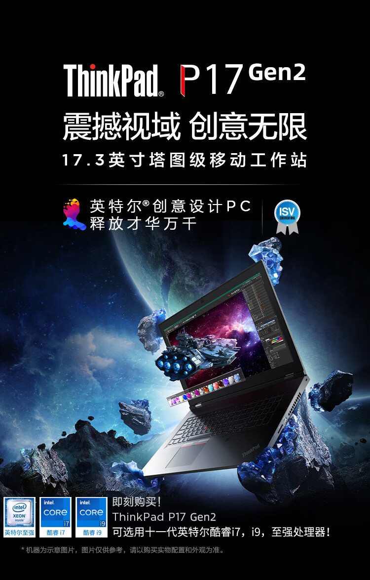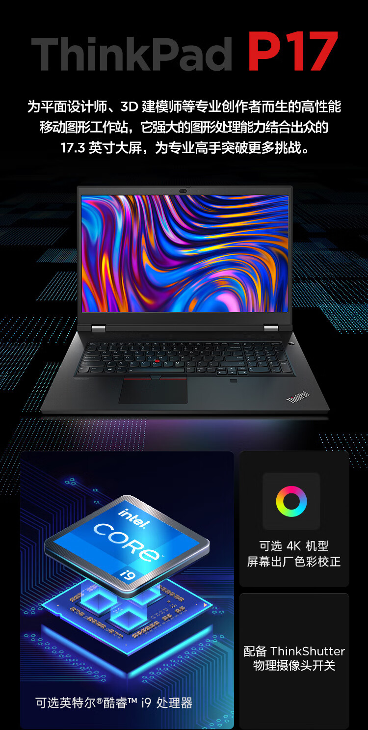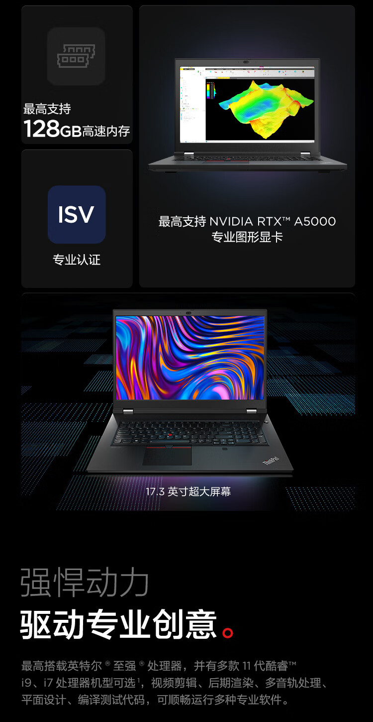 ThinkPad联想笔记本电脑P17 17.3英寸设计师高性能移动图形工作站 i7-11800H/128G/4T/A4000 8G/W11定制 自营
