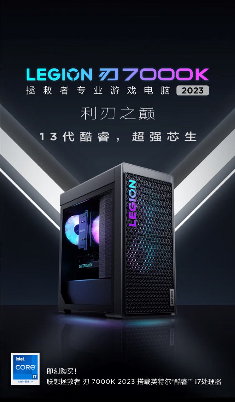 联想(Lenovo)JDG联想拯救者刃7000K 2023Ai动画电脑主机(i7-13700KF RTX3070TI 8G显卡 定制 64GDDR5 2TBSSD 升级 ARGB侧透) 自营