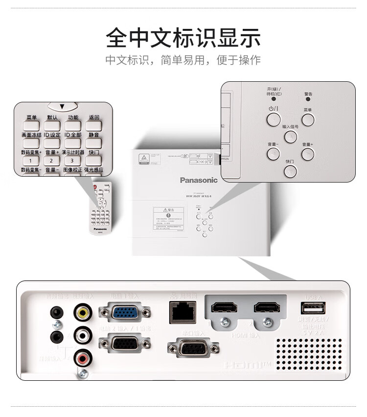 松下(Panasonic )投影仪PT-UW391C低蓝光高清宽屏企业级办公投影机(高清宽屏 3800流明 HDMI接口) 自营