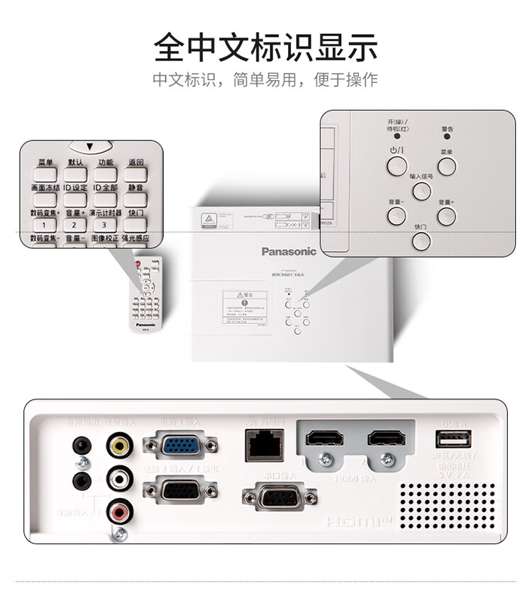 松下(Panasonic)投影仪PT-X427C 高对比度企业级高品质办公教育投影机(XGA分辨率 4300流明 双HDMI接口) 自营