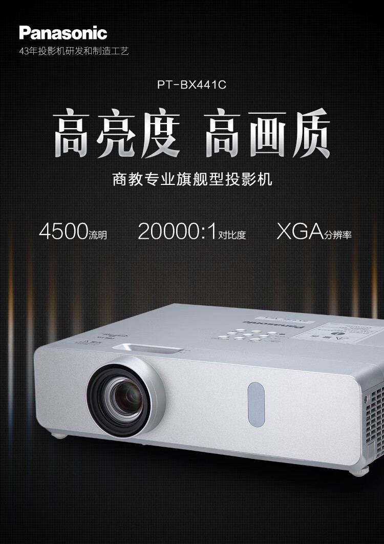 松下(Panasonic)投影仪PT-BX441C高画质高亮度高对比度企业级办公投影机 (4500流明 1.6倍变焦 HDMI接口) 自营