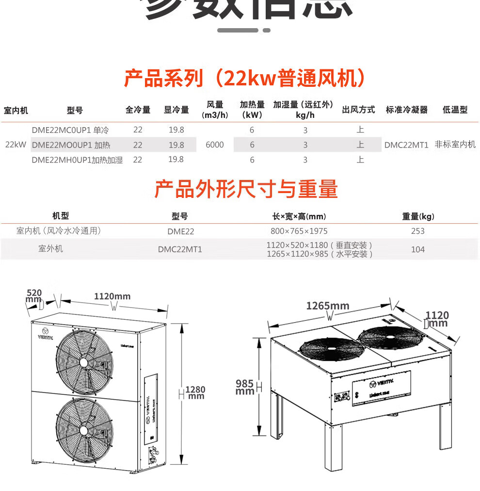 计算机机房精密空调VERTIV维谛 DME22MH0UP1 恒温恒湿22KW 10P上送风 DMC22WT1【预订款】 自营