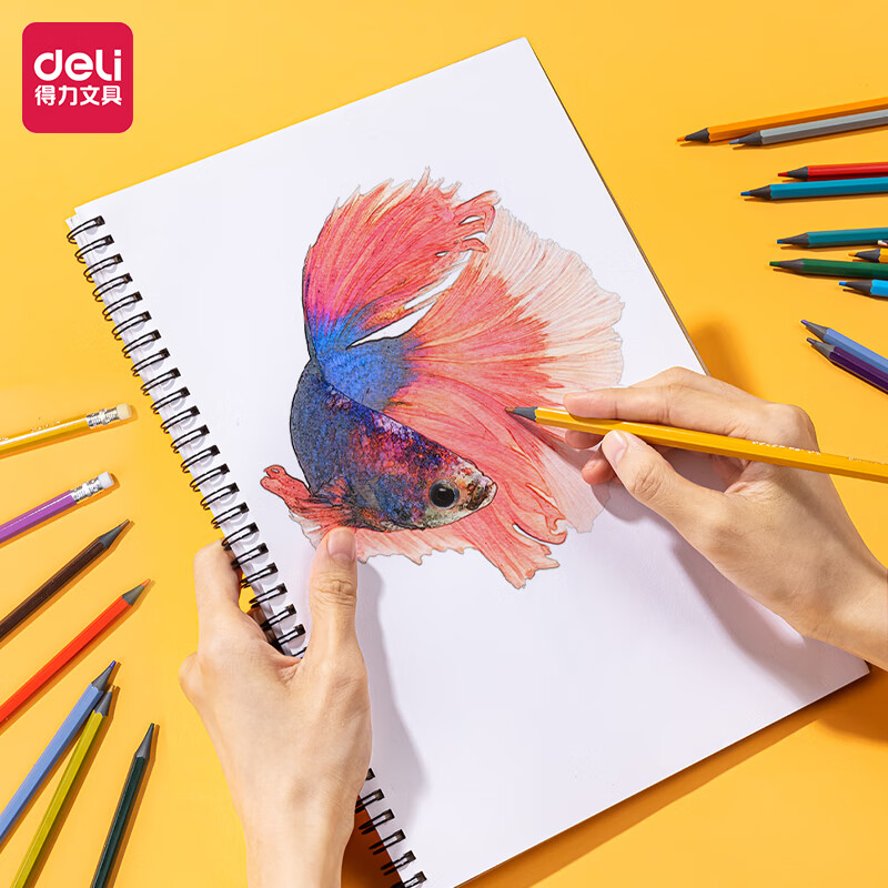 得力(deli)48色六角杆皮头可擦彩铅(混)(48色/筒)学生绘画涂色画笔画具画材美术套装 开学季暑假礼物7073-48 自营