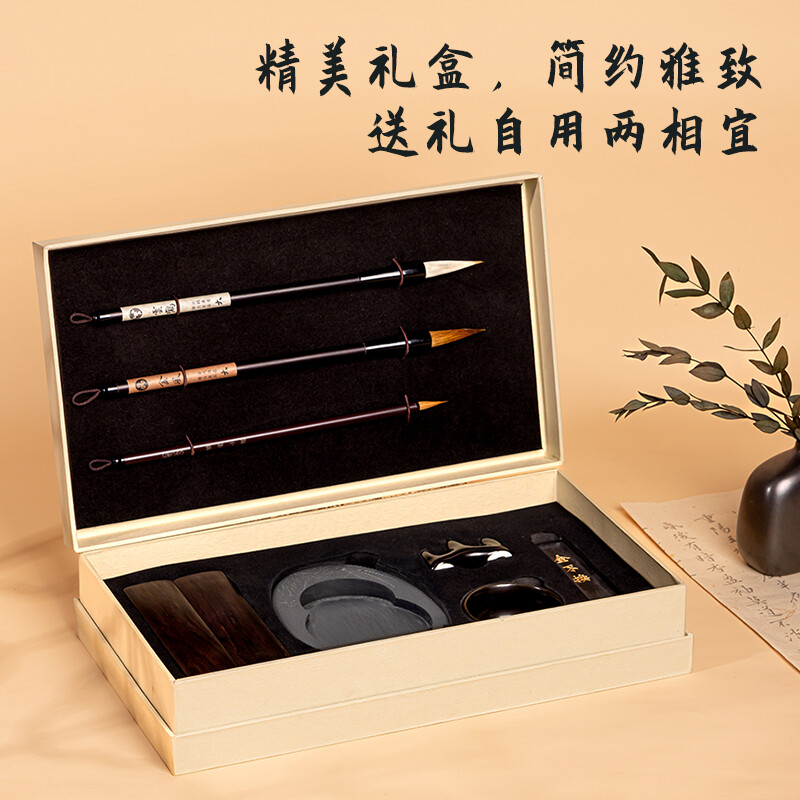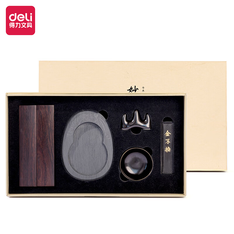 得力(deli)文房四宝套装 毛笔砚台书法成人初学者笔墨纸砚楷书狼毫 无笔架 礼盒8件套 HW513 自营