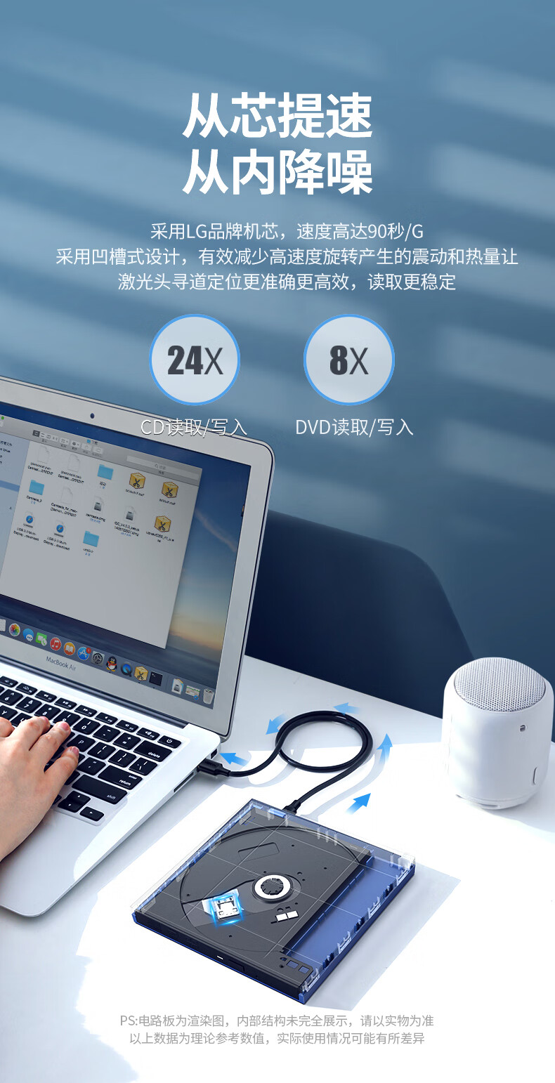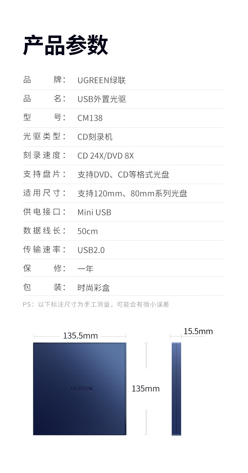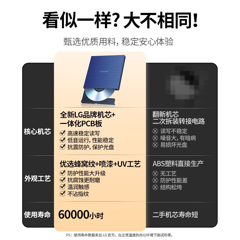 绿联 8倍速 USB外置移动光驱 DVD光盘刻录机 适用笔记本电脑台式机外接光驱便携DVD光驱 【USB款 即插即用】强劲LG机芯 自营