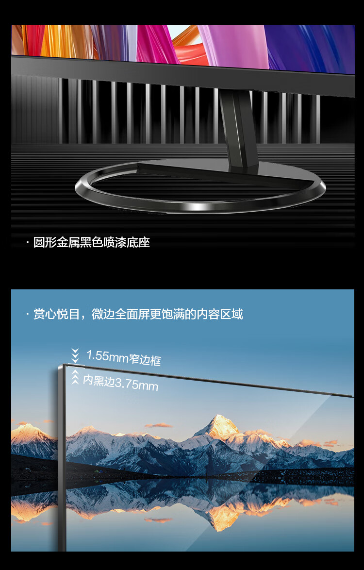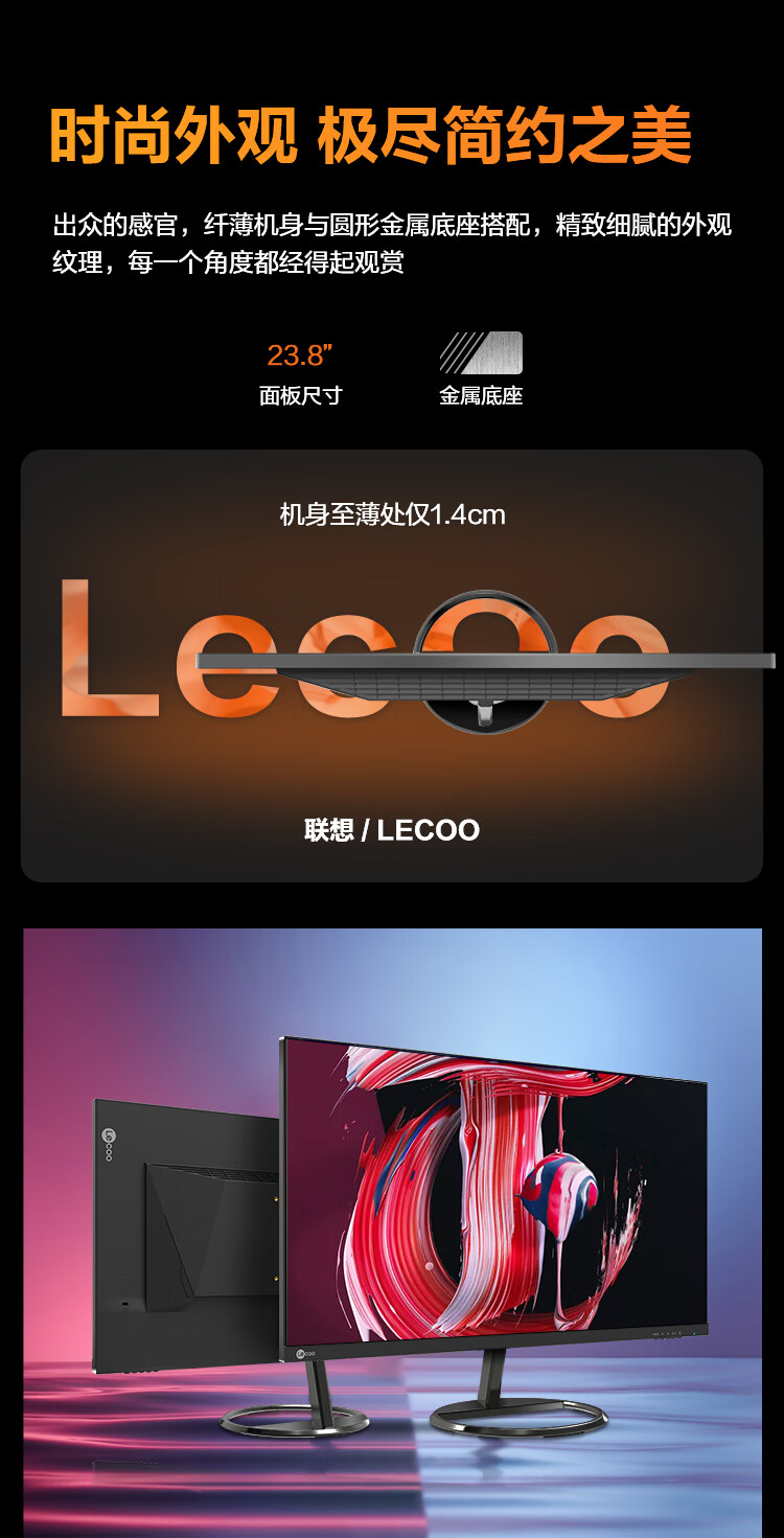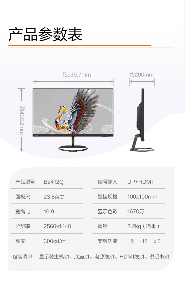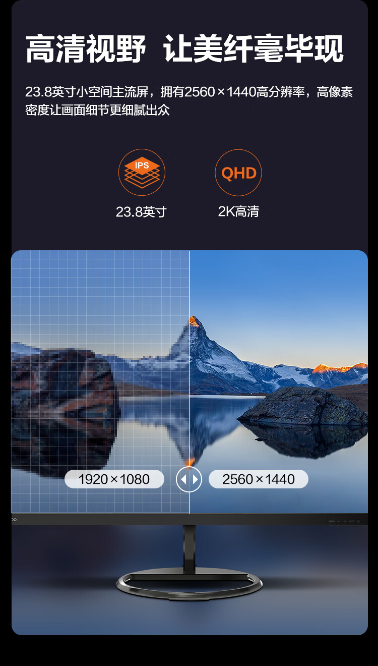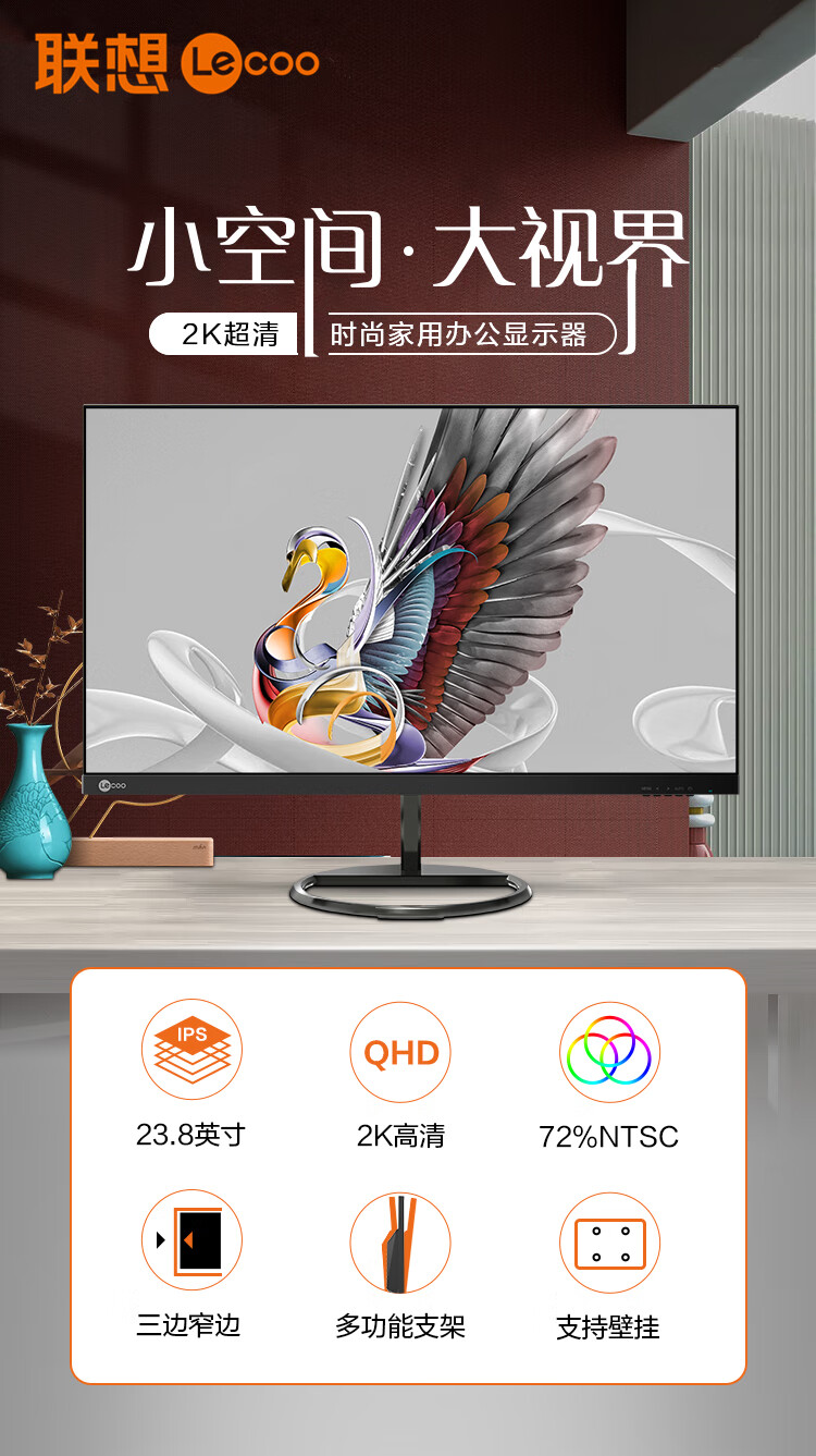 联想 23.8英寸2K显示器 IPS 微边框 HDMI DP接口 爱眼低蓝光 可壁挂 办公/家用电脑显示屏 B2412Q 自营