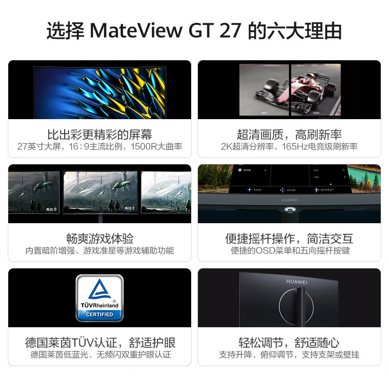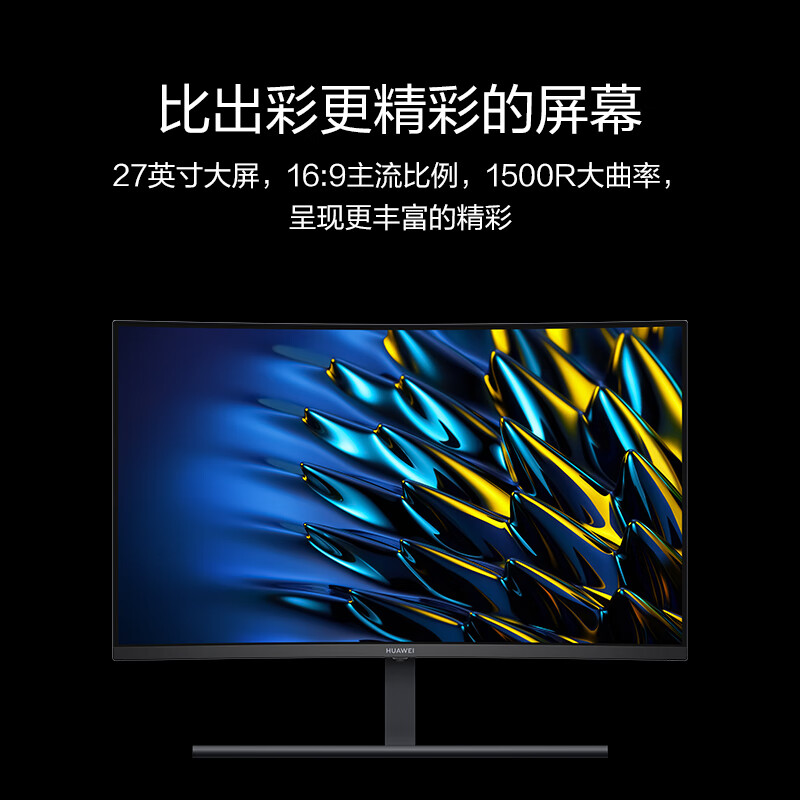 华为HUAWEI MateView GT 27英寸曲面显示器 2K 165Hz 可壁挂 低蓝光无频闪 升降俯仰调节 游戏电竞办公 自营