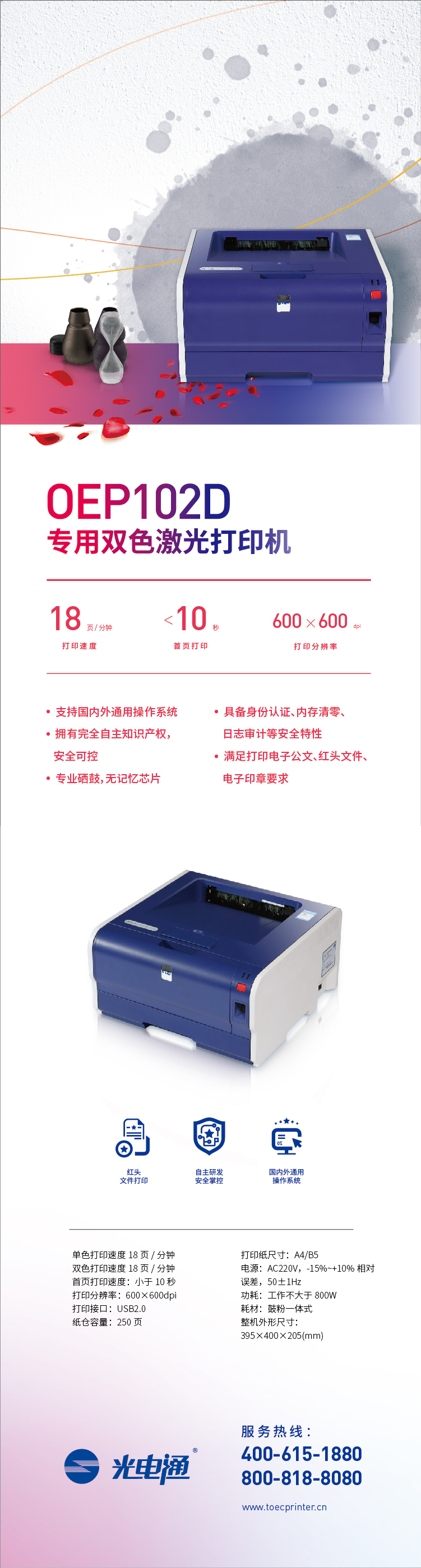 光电通OEP102D 全国产化信创设备 专用A4红黑双色激光打印机 自营