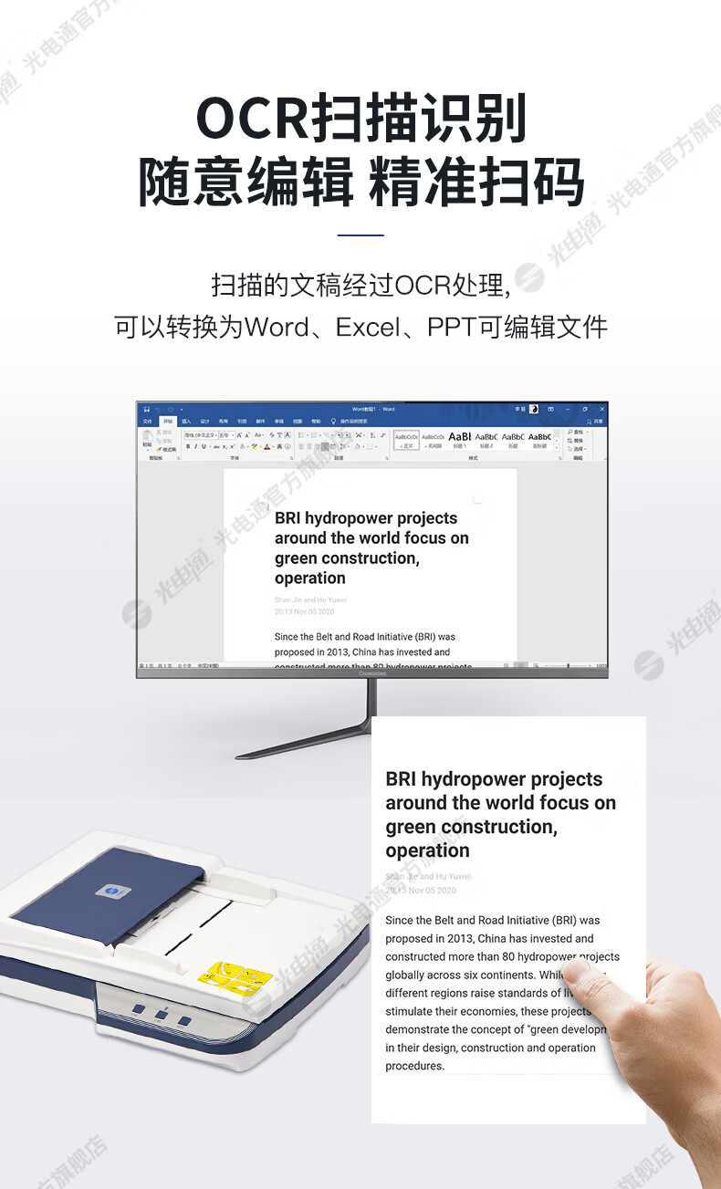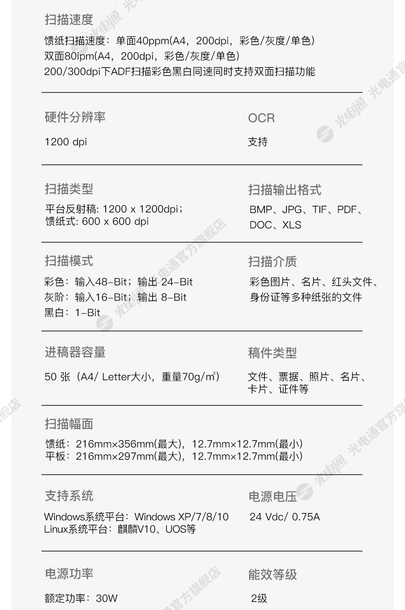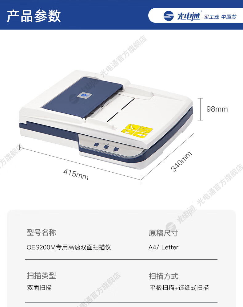 光电通OES200M 全国产化信创设备 专用A4高速双面扫描仪(平板扫描+自动馈纸式扫描 ) 自营