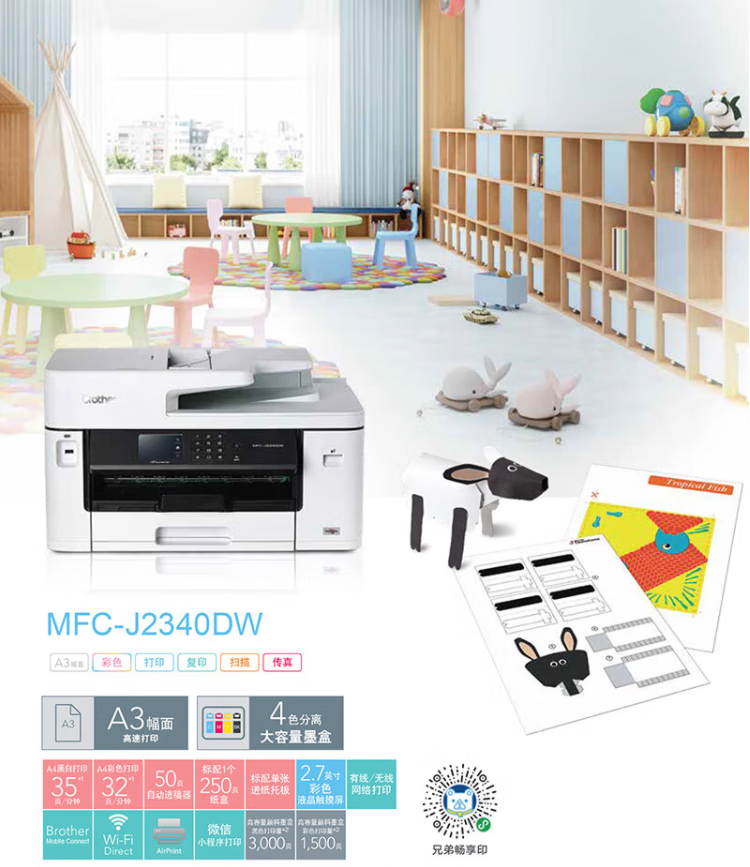 兄弟(brother)MFC-J2340DW A3彩色喷墨照片多功能打印一体机 无线彩色打印机装修图打印机 自营