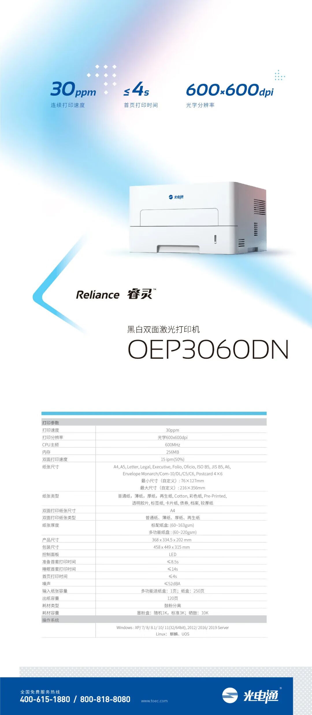 光电通·睿灵系列OEP3060DN黑白双面激光打印机 自营