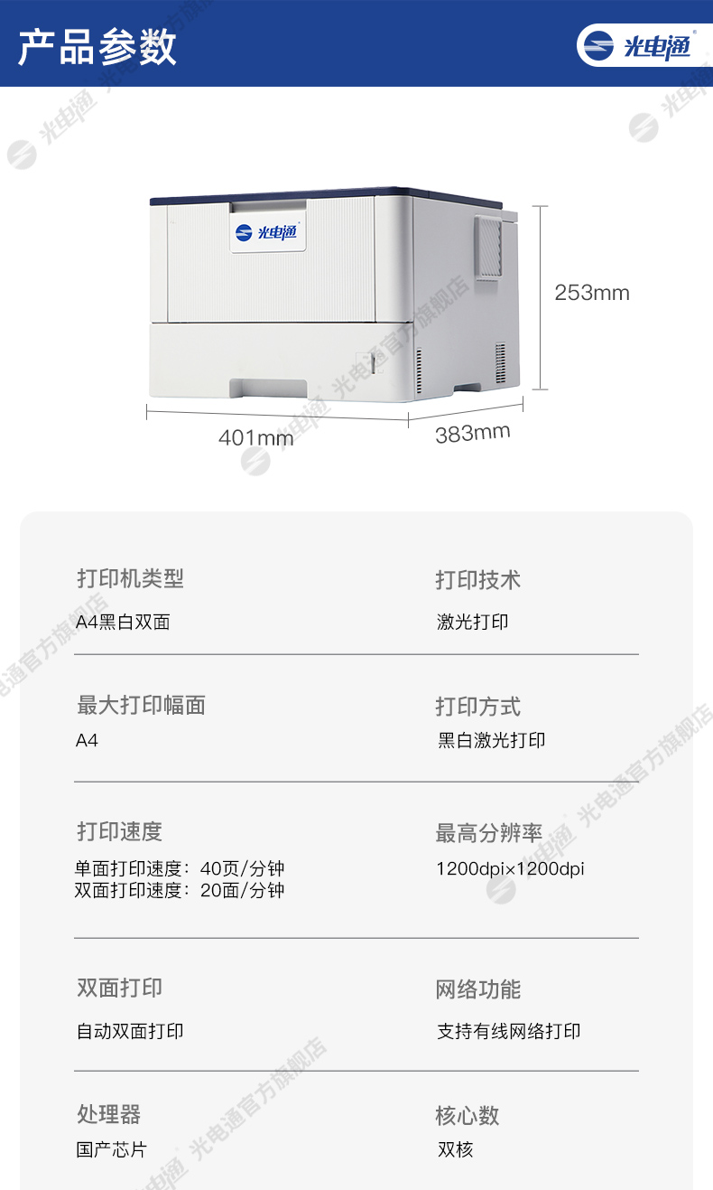 光电通OEP4010DN 全国产化信创设备 专用A4黑白双面激光打印机 自动双面打印 自营