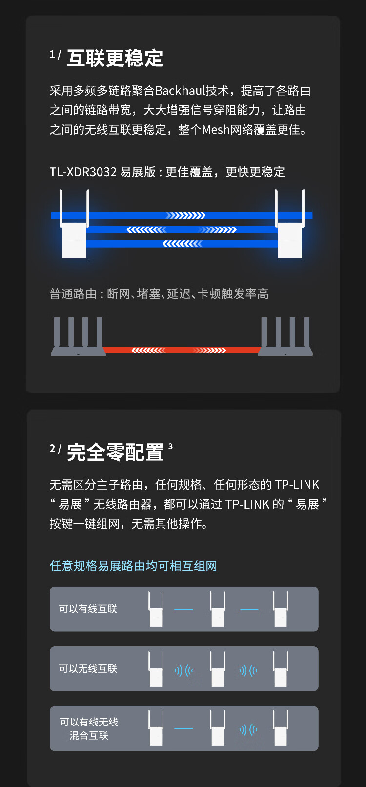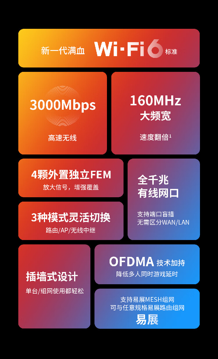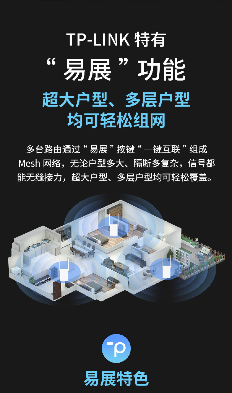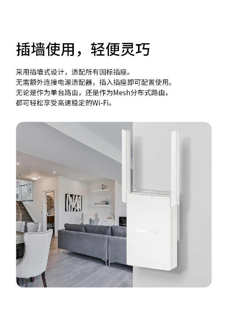 TP-LINK AX3000双频千兆WiFi6 子路由 无线路由器 信号扩展 Mesh易展 墙面路由信号放大器 XDR3032易展版 自营