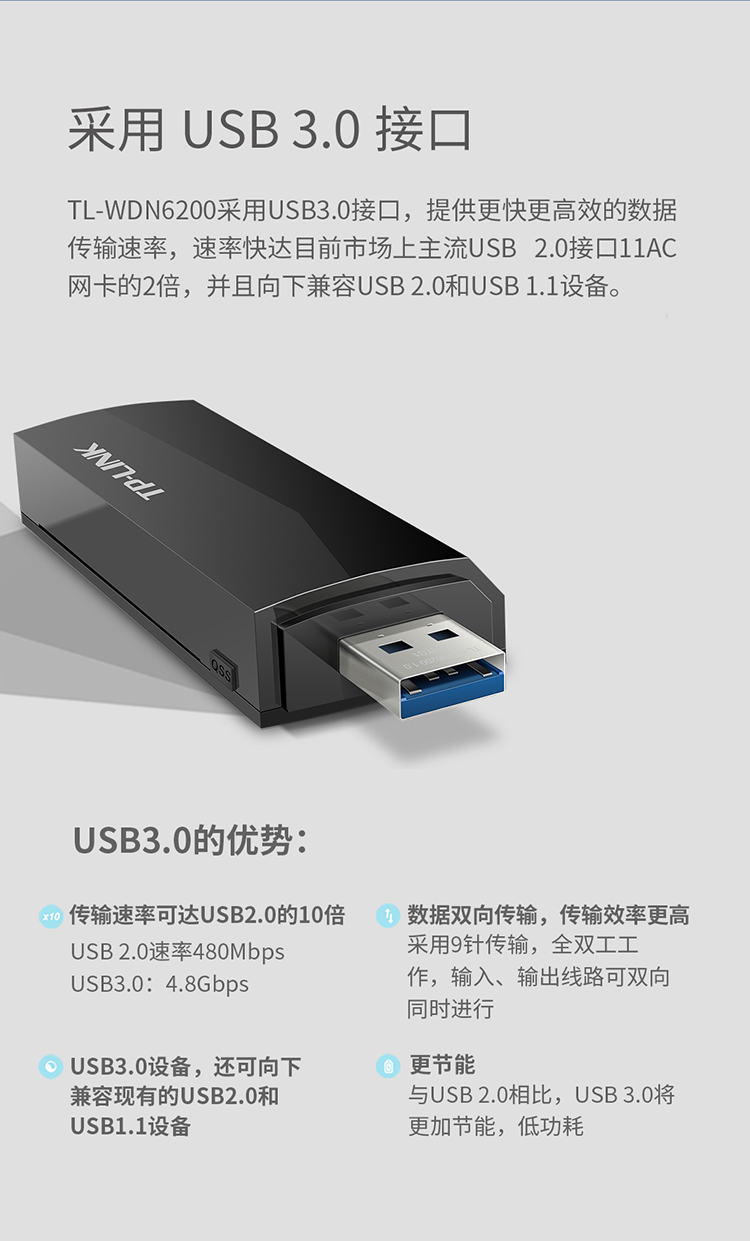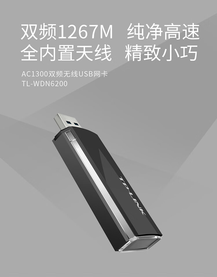 TP-LINK 1267M双频无线网卡USB 台式机笔记本电脑随身wifi接收器发射器 TL-WDN6200 自营