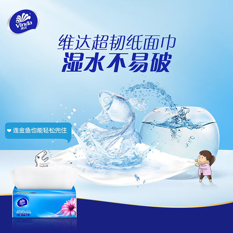 维达(Vinda)抽纸 超韧(130+20)抽*3包M码 湿水不易破 卫生纸 纸巾 餐巾纸 自营