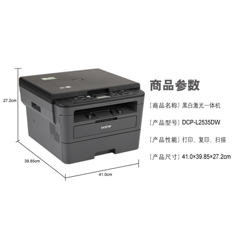 兄弟(brother)DCP-L2535DW黑白激光自动双面商用办公打印机手机无线学生家用一体机复印扫描 自营