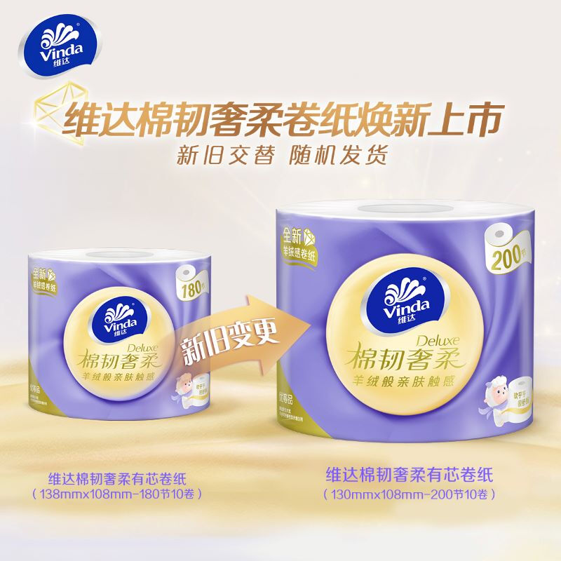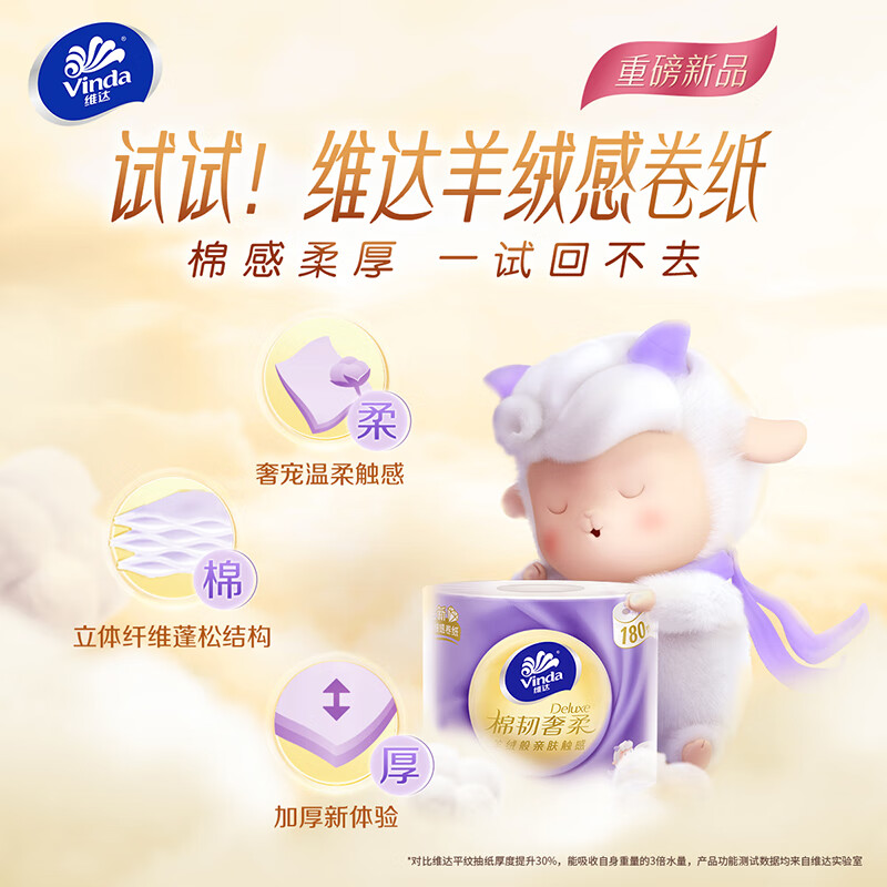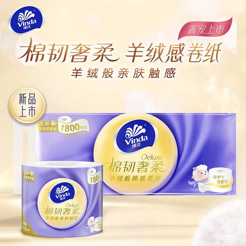 维达(Vinda)卷纸 棉韧奢柔180节10卷 羊绒感纸巾 卫生纸 自营
