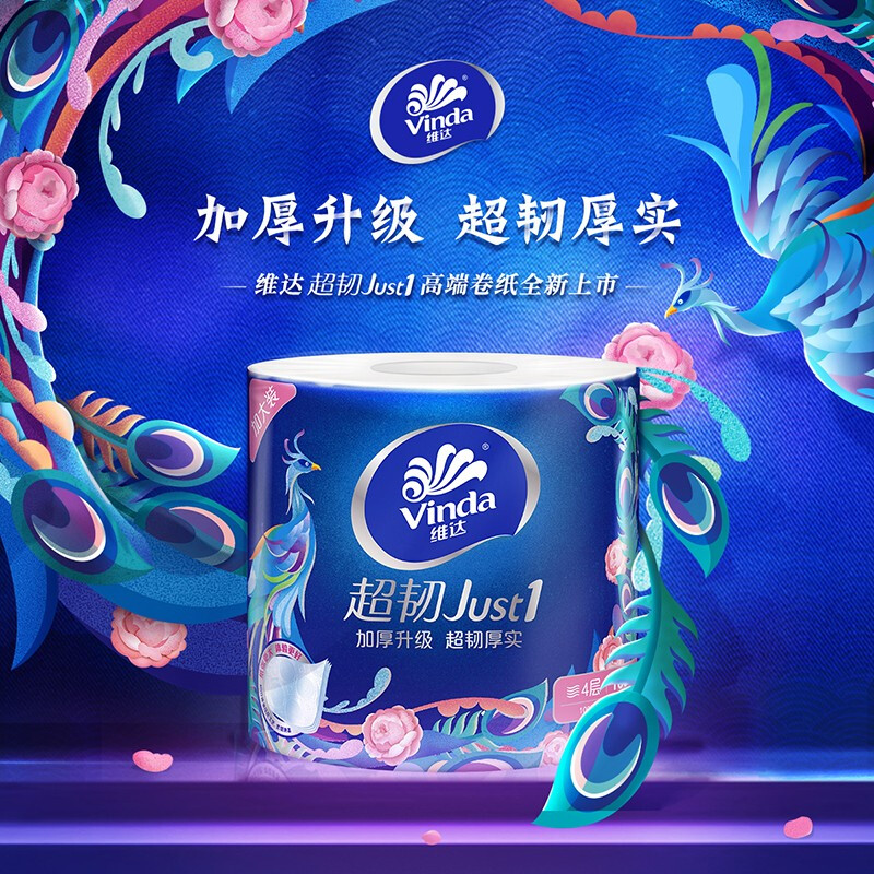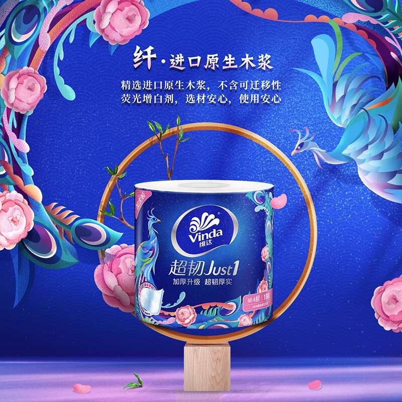 维达(Vinda)卷纸 超韧180克27卷 4层加厚 卷筒纸纸巾 整箱 自营
