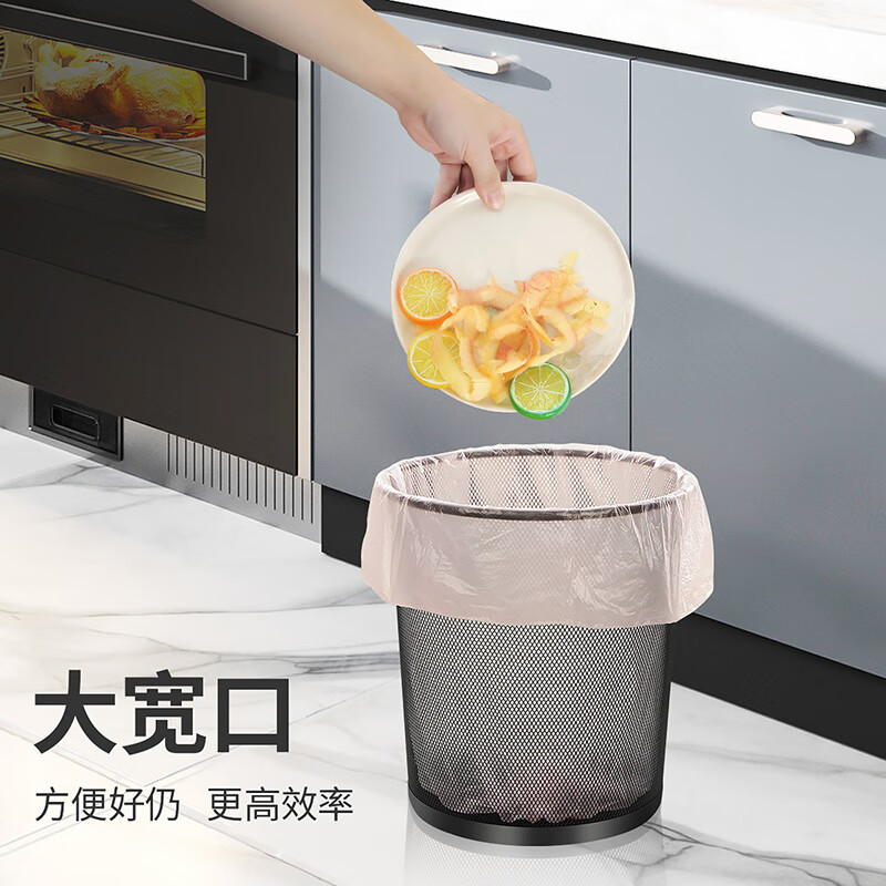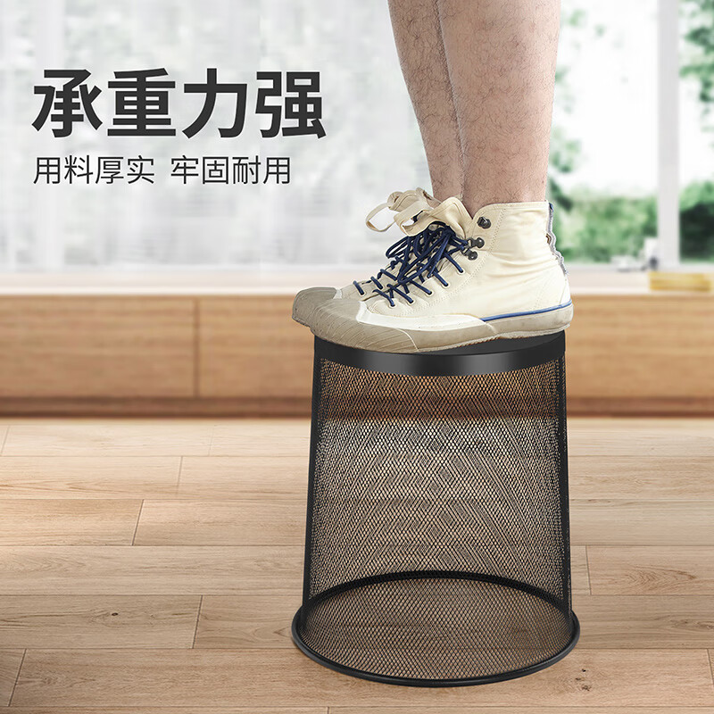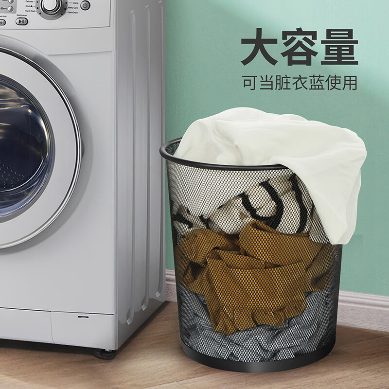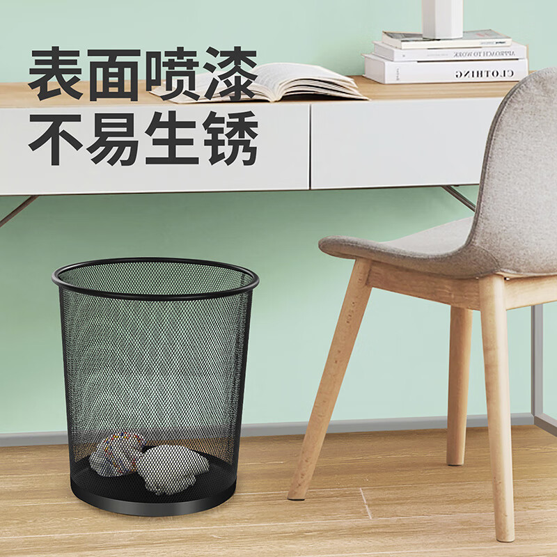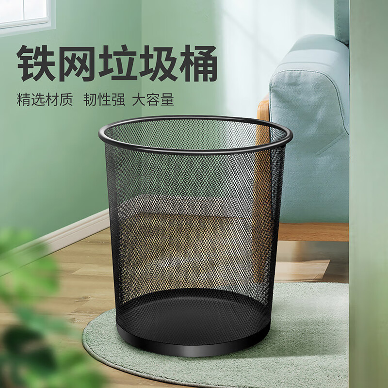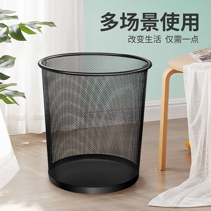 百家好世 家用金属网垃圾桶客厅卫生间卧室圆形铁丝网办公环保纸篓黑色12L 自营