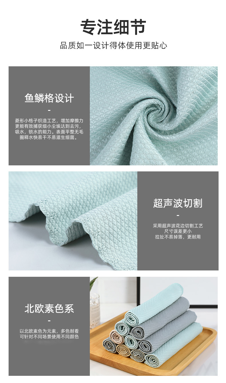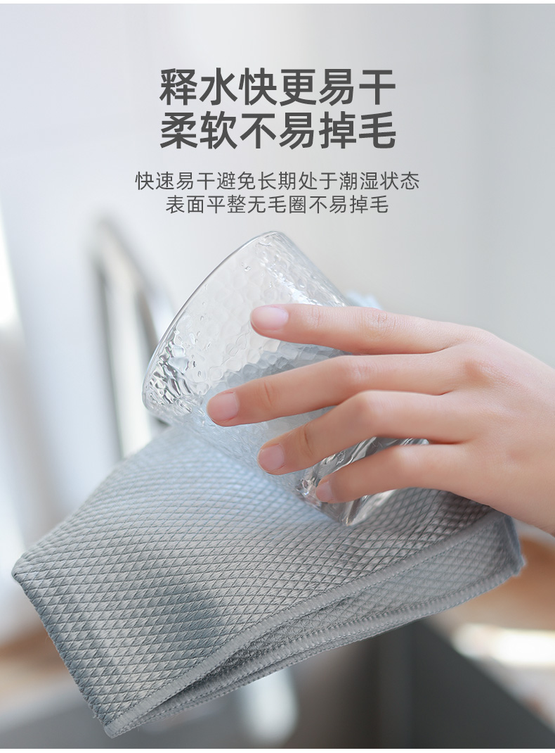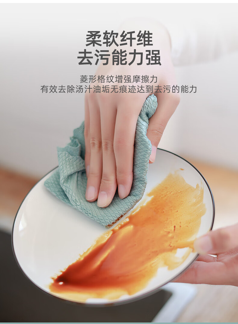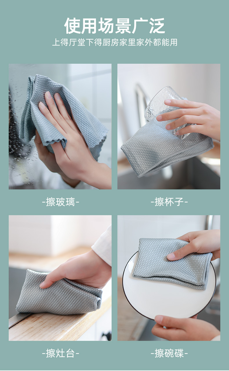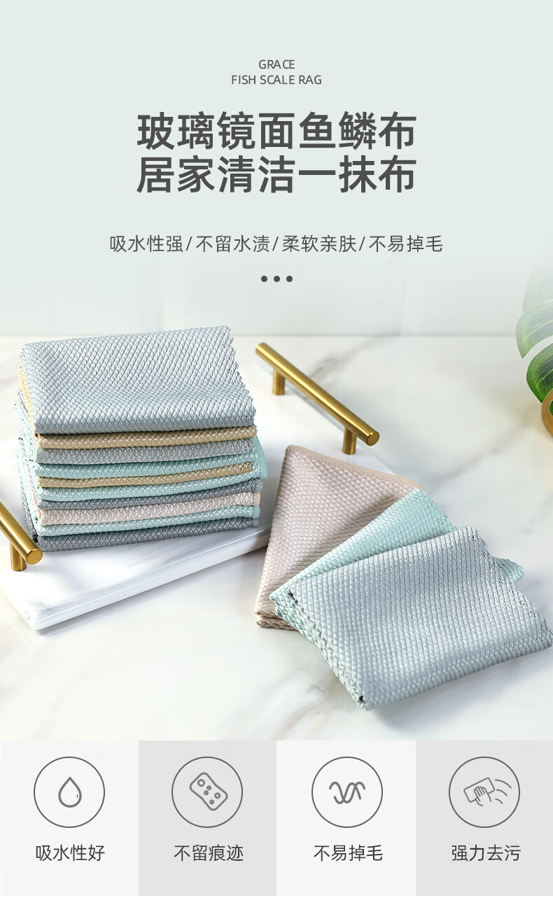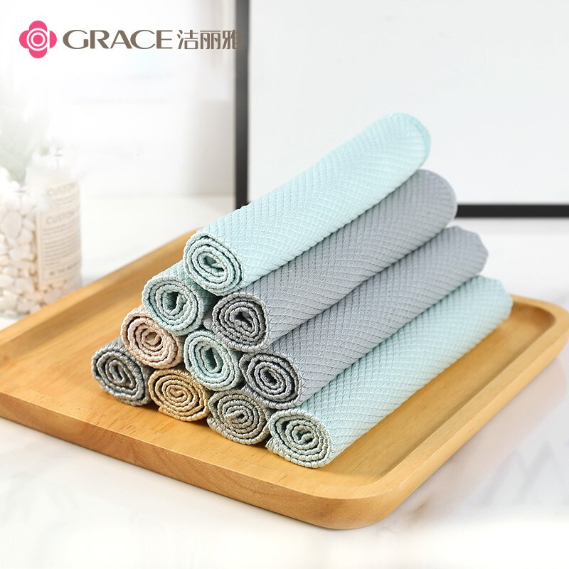 洁丽雅(Grace) 擦玻璃鱼鳞抹布不留痕家务清洁厨房去油无痕吸水不掉毛毛巾5条装 自营