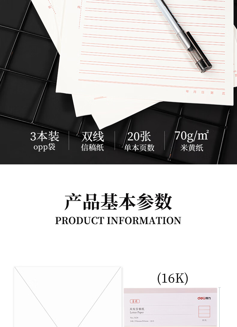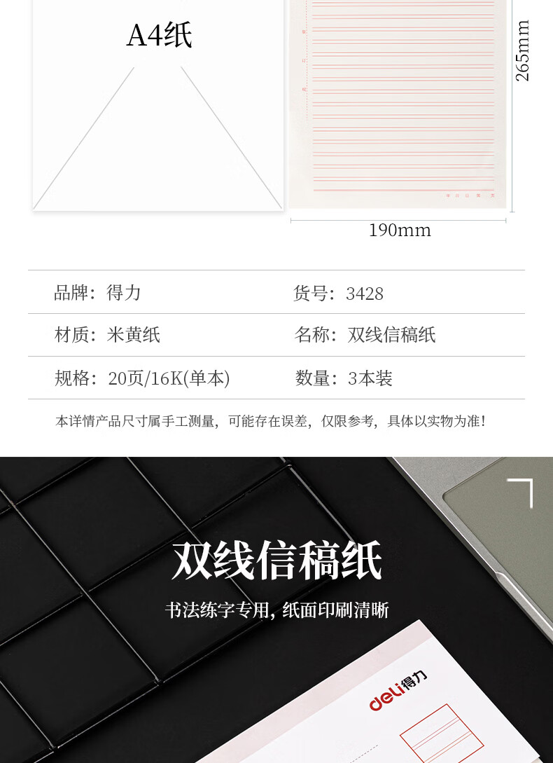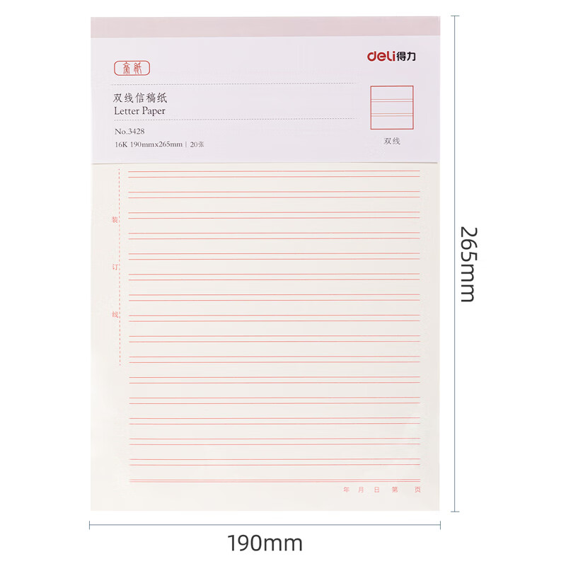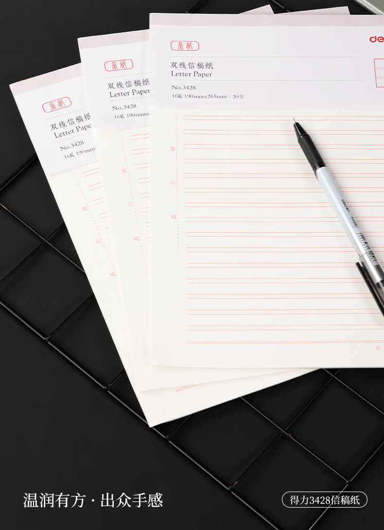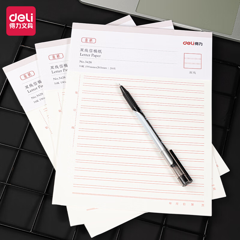得力(deli)3本16K/20张双线信纸信稿纸 笔记本子信签纸草稿纸作业本 3428 自营