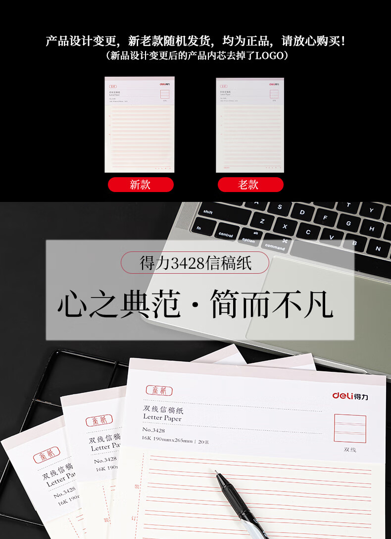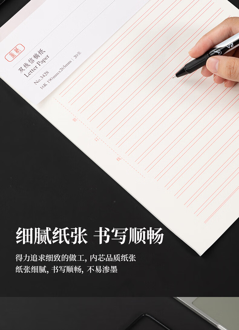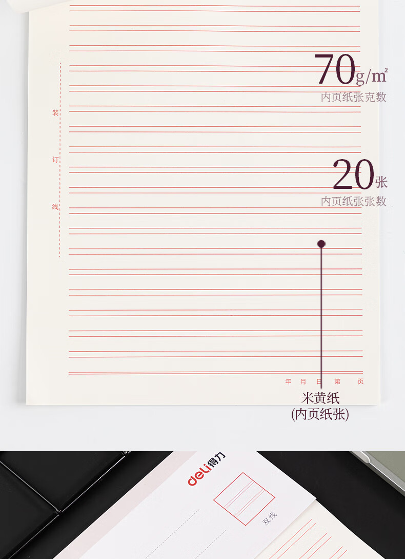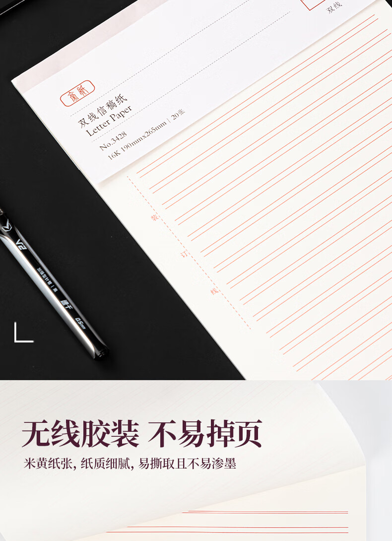 得力(deli)3本16K/20张双线信纸信稿纸 笔记本子信签纸草稿纸作业本 3428 自营
