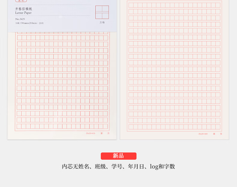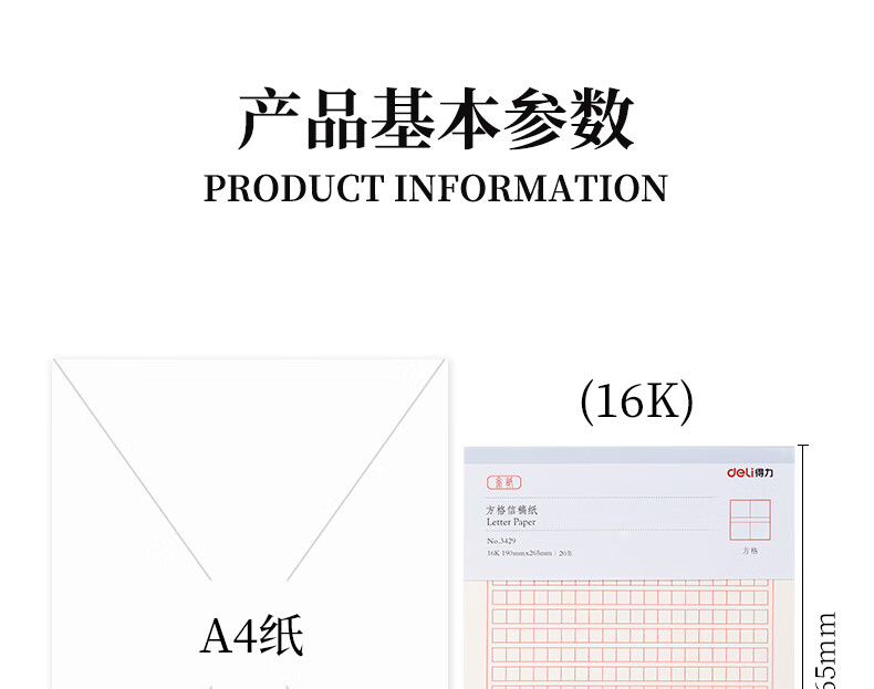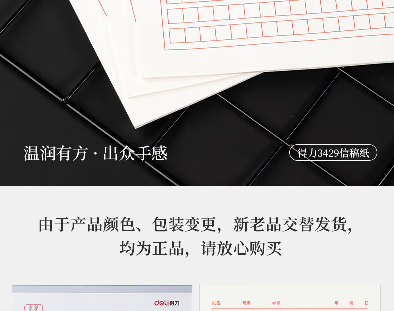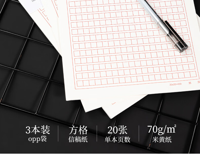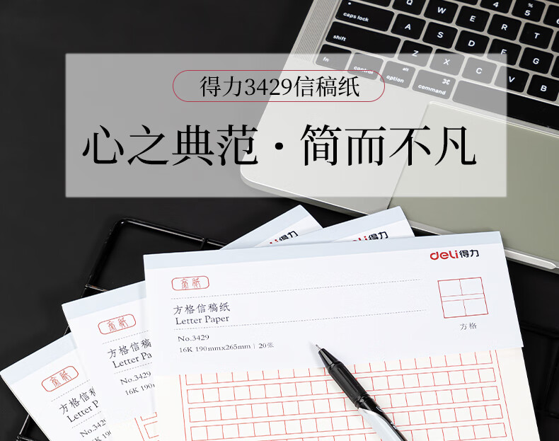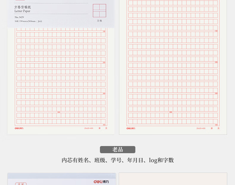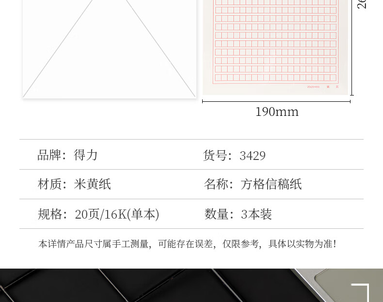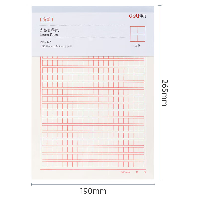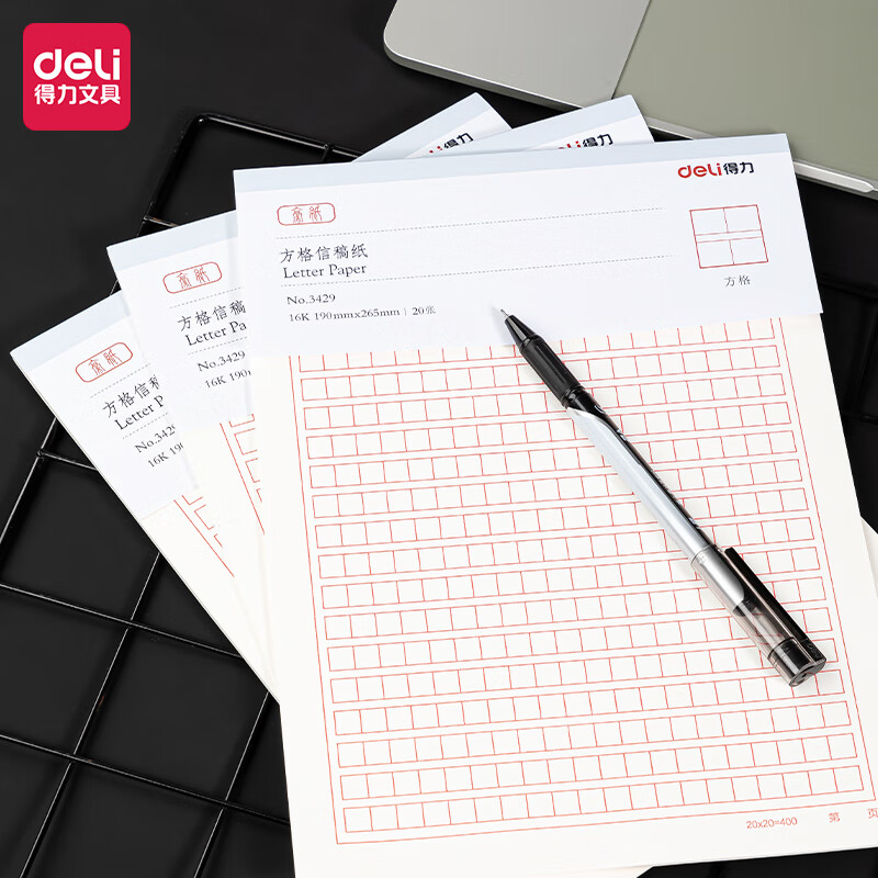 得力(deli)3本16K/20张方格信纸信稿纸 专用纸笔记本子信签纸草稿纸作业本 3429 自营