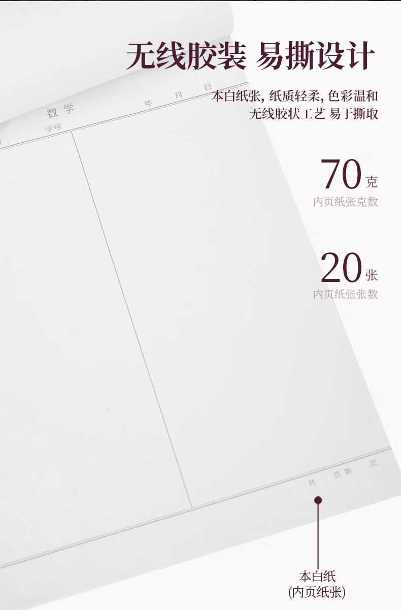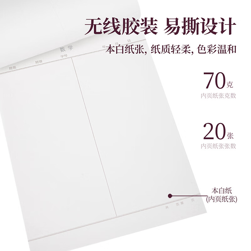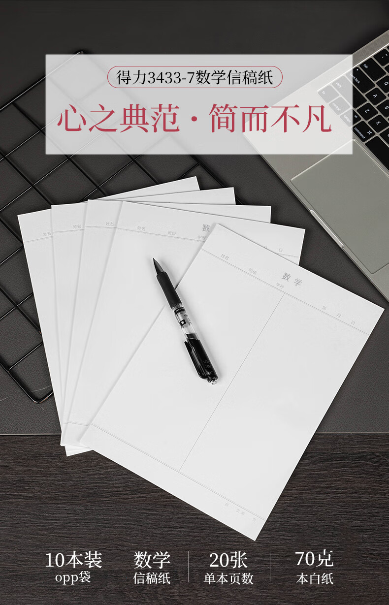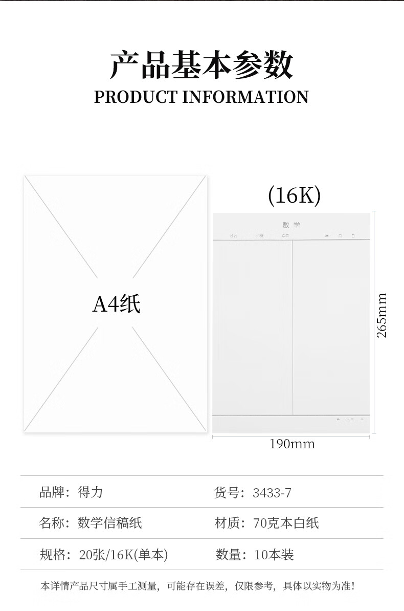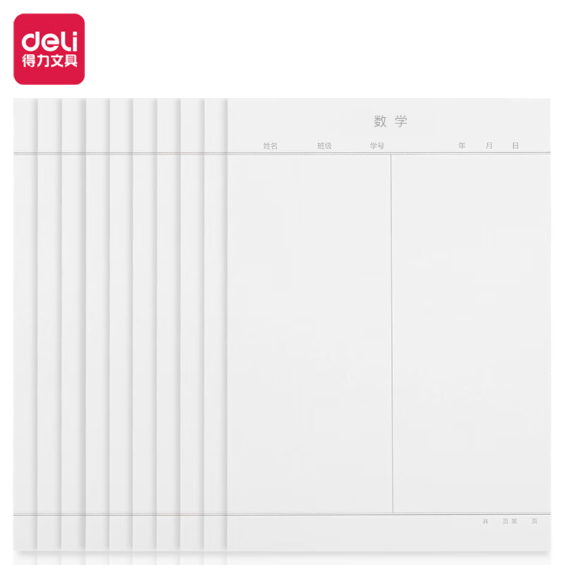 得力(deli)10本16K/20张数学作业纸信纸信稿纸 笔记本子信签纸草稿纸作业本 3433-7 自营