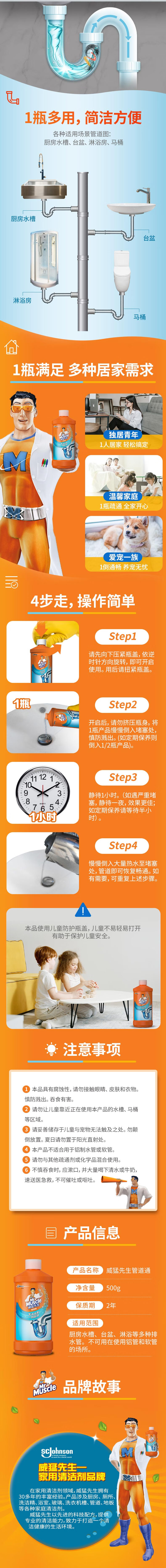 威猛先生(Mr Muscle)管道疏通剂500g 下水道疏通剂 马桶卫生间管道疏通 超市同款 自营