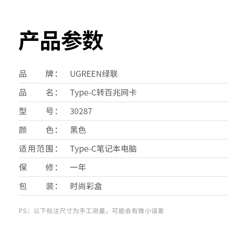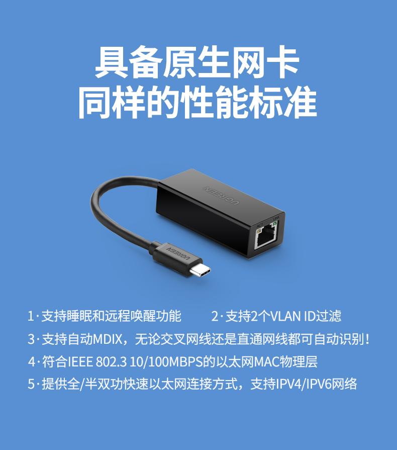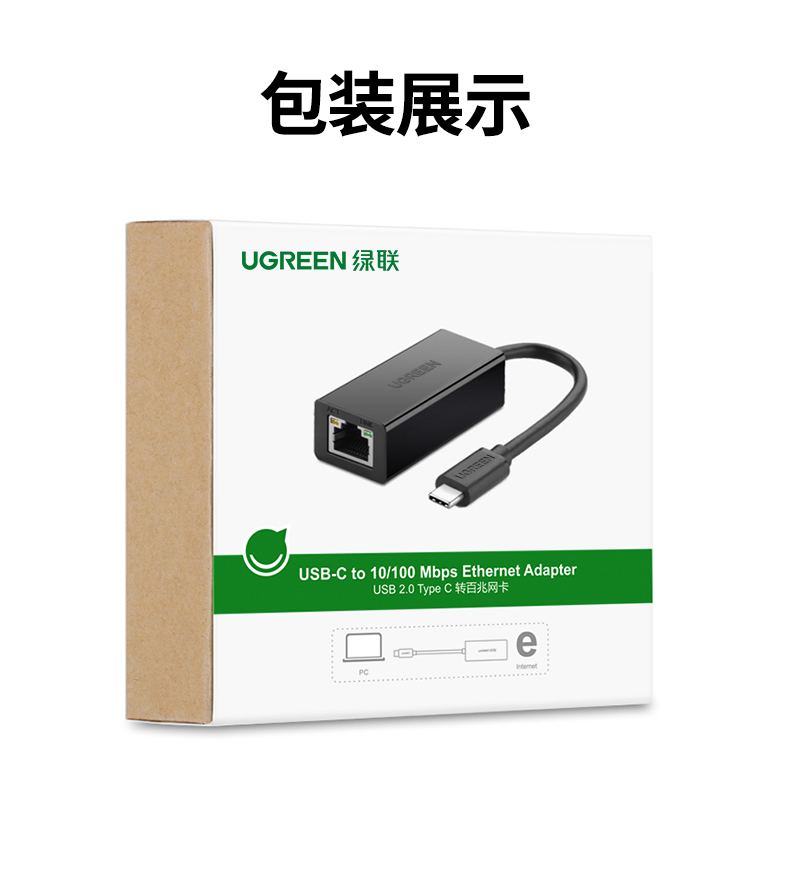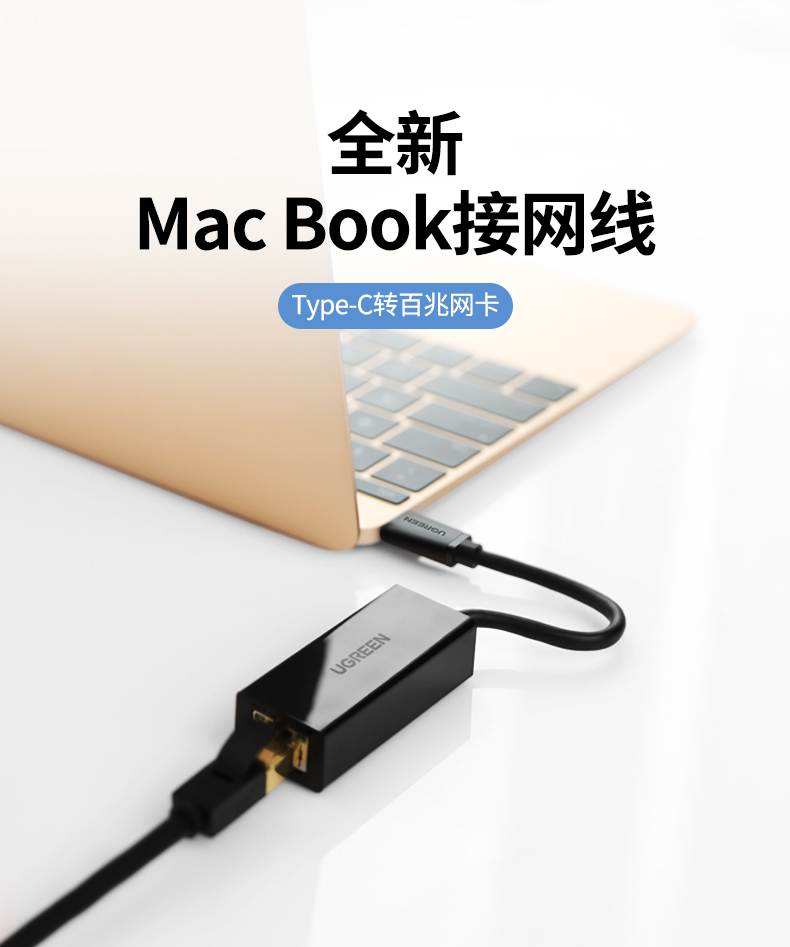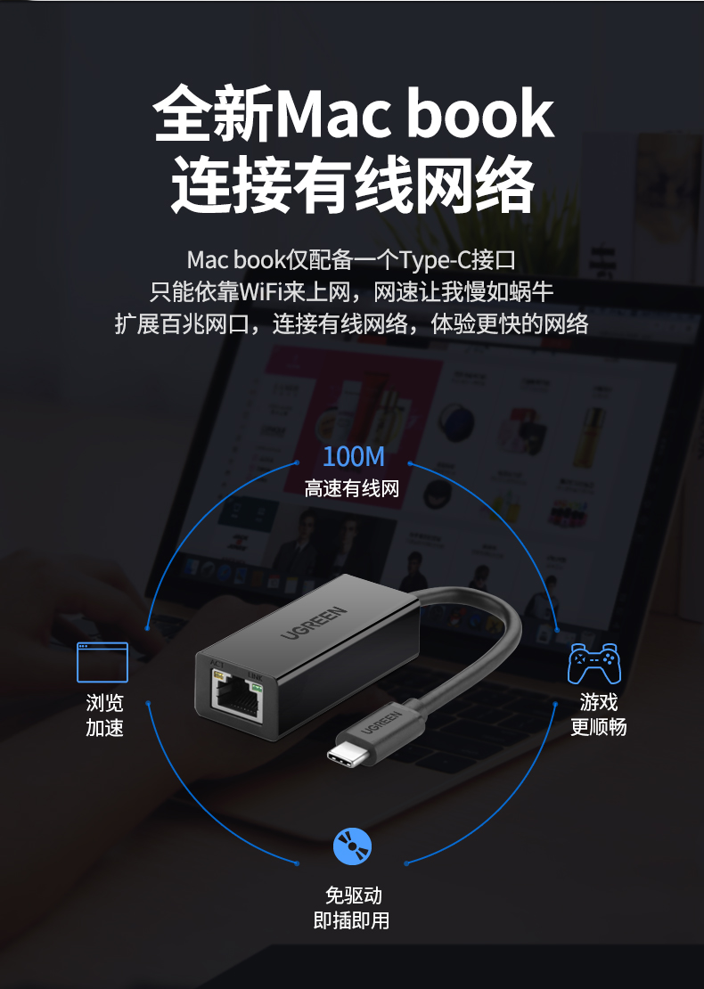 绿联 Type-C百兆有线网卡 USB-C转RJ45网口转换器 适用苹果15/MacBook华为笔记本电脑平板外置网线接口转接头 自营