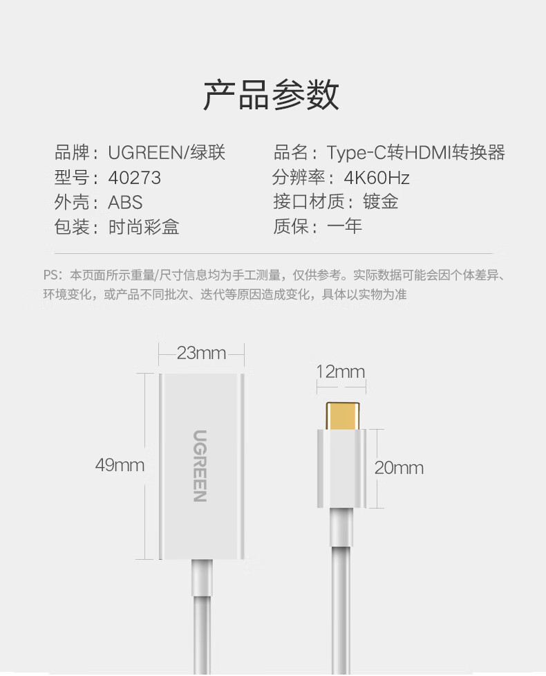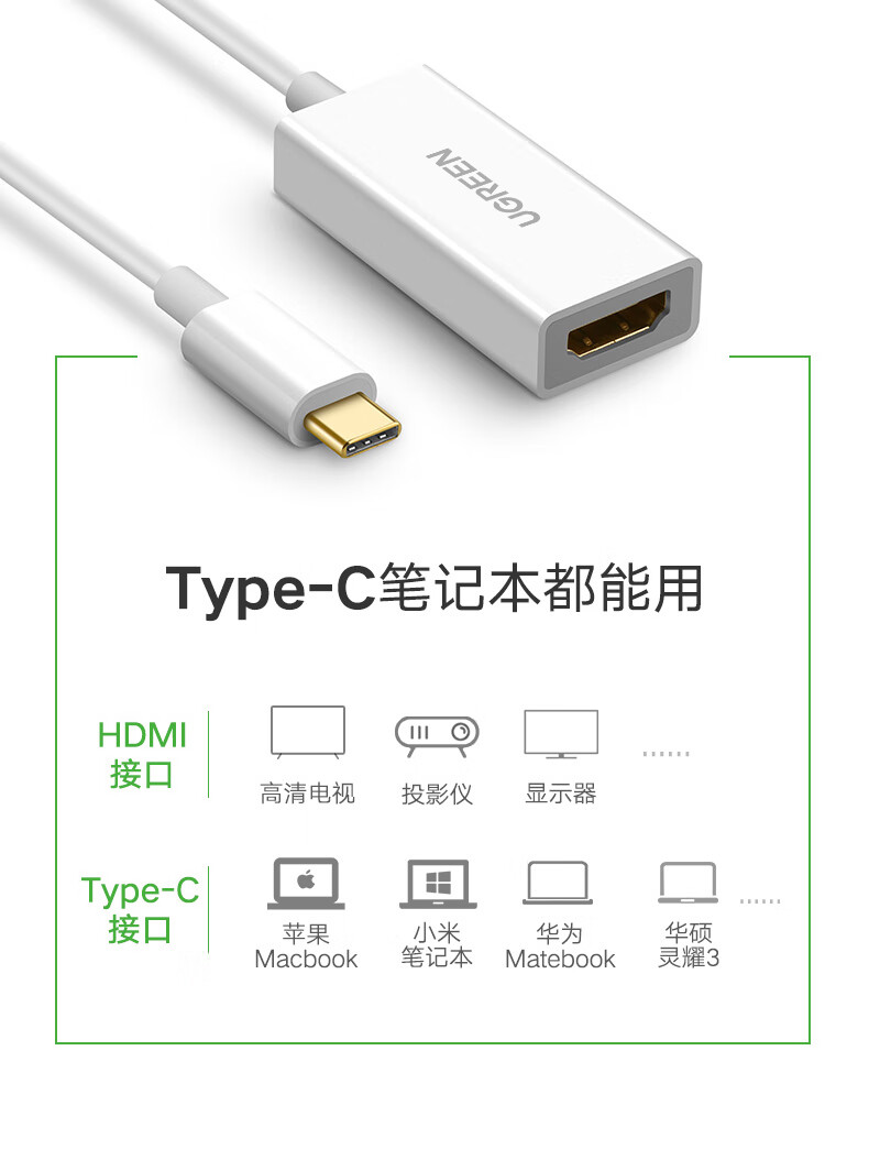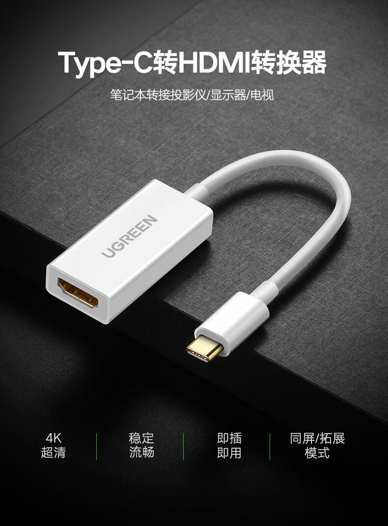 绿联 Type-C转HDMI 母转接头转换切换器线雷电3/4扩展高清4K60Hz投屏通用USB-C口苹果15笔记本电脑手机ipad 自营