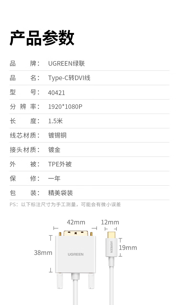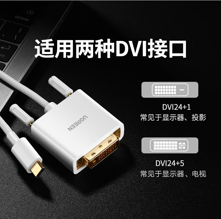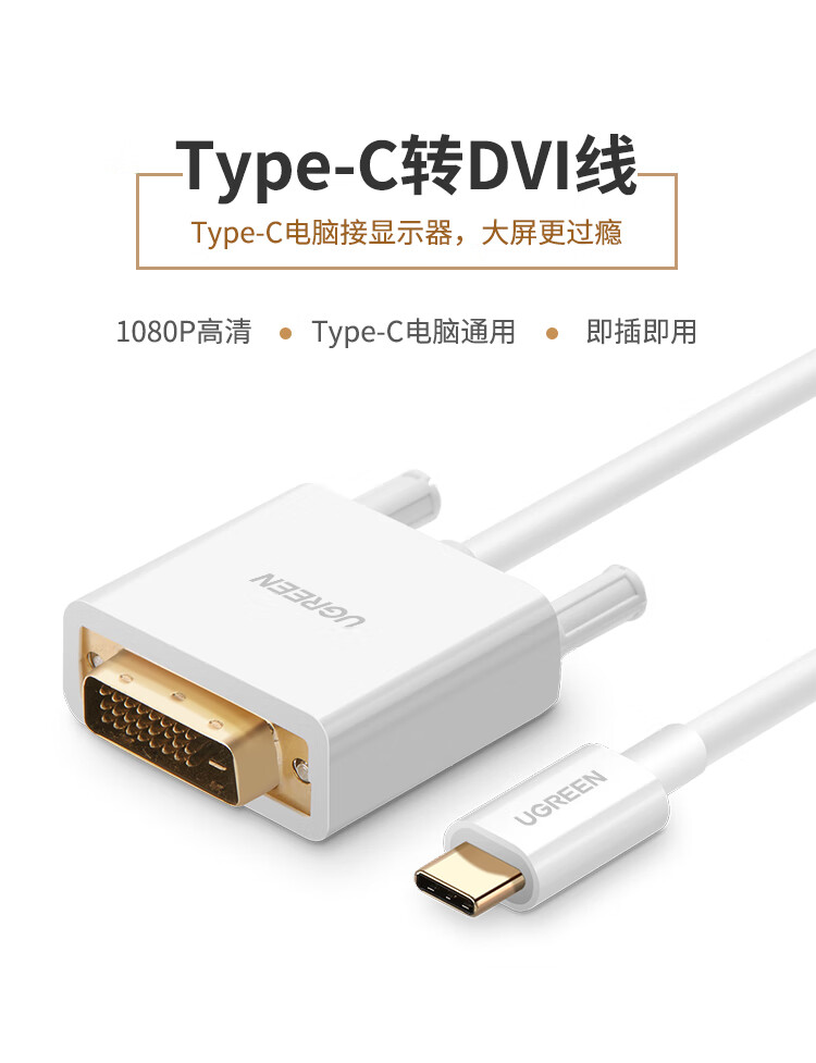 绿联Type-C转DVI转接头线通用iphone15苹果MacBookPro笔记本电脑手机USB-C转换器投屏扩展接投影配件1.5米 自营