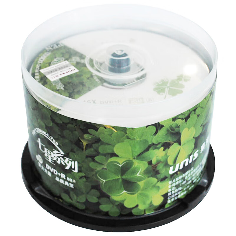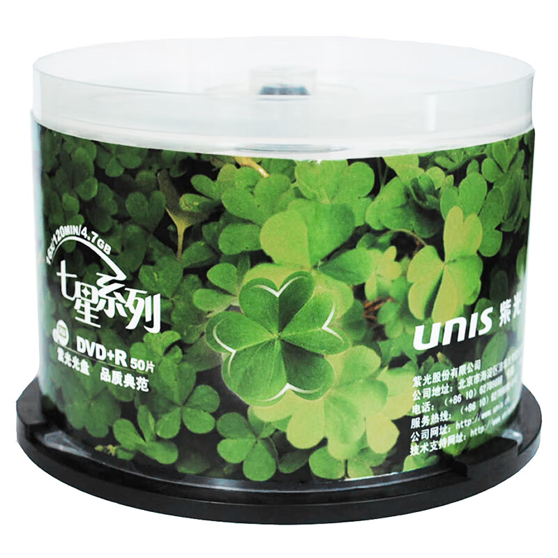 紫光(UNIS)DVD+R空白光盘/刻录盘 16速 4.7G 七星四叶草 桶装50片 自营