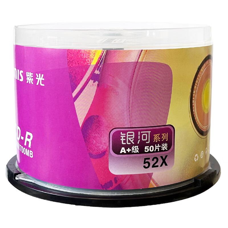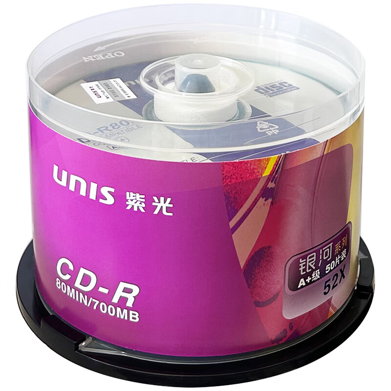 紫光(UNIS)CD-R空白光盘/刻录盘 银河系列 52速 700M 桶装50片 自营