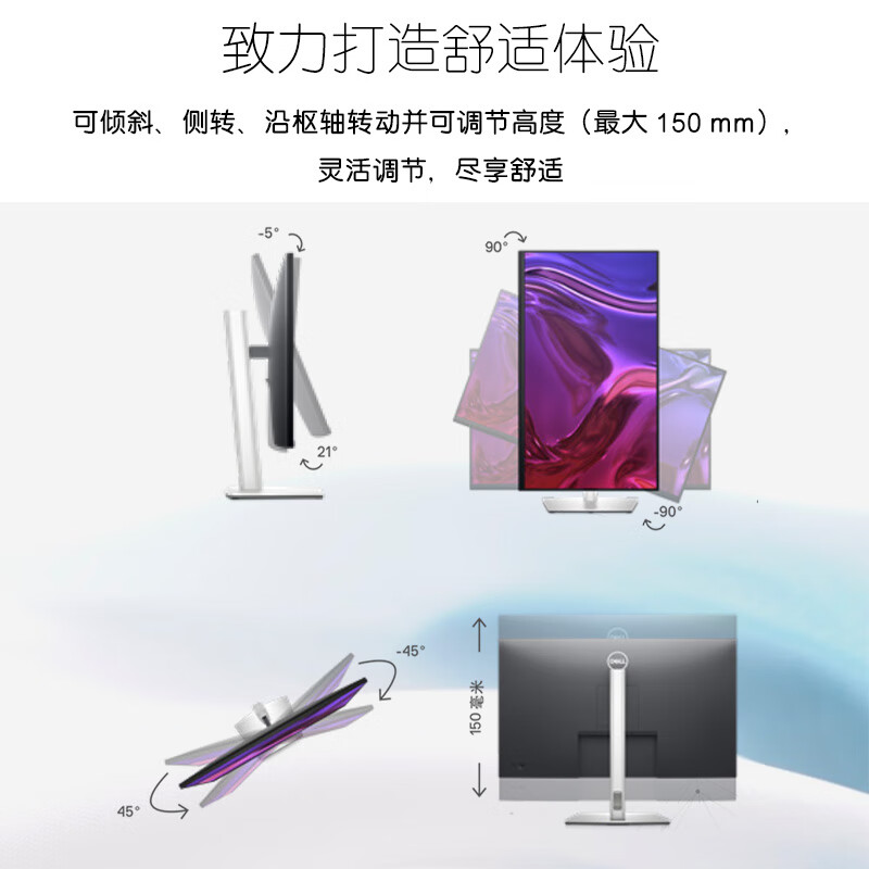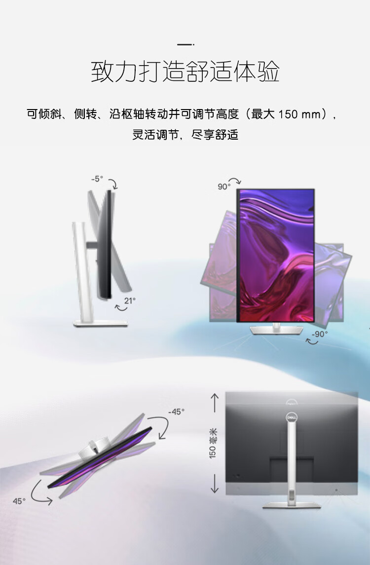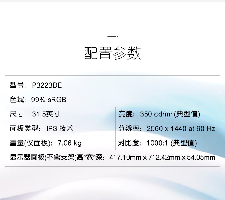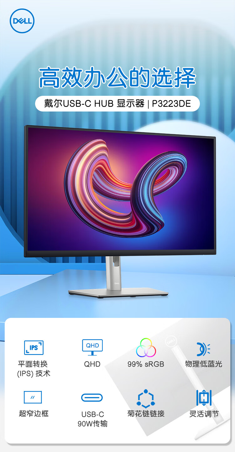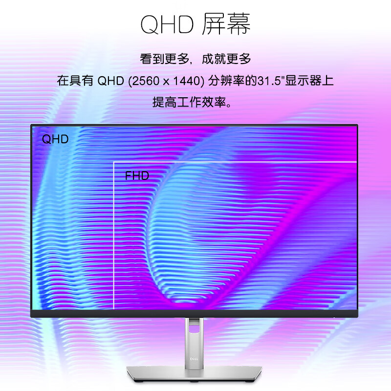 戴尔(DELL)31.5英寸 2K显示器 IPS 防蓝光 Type-C 90W反向充电 旋转升降支架 电脑显示屏 P3223DE 自营