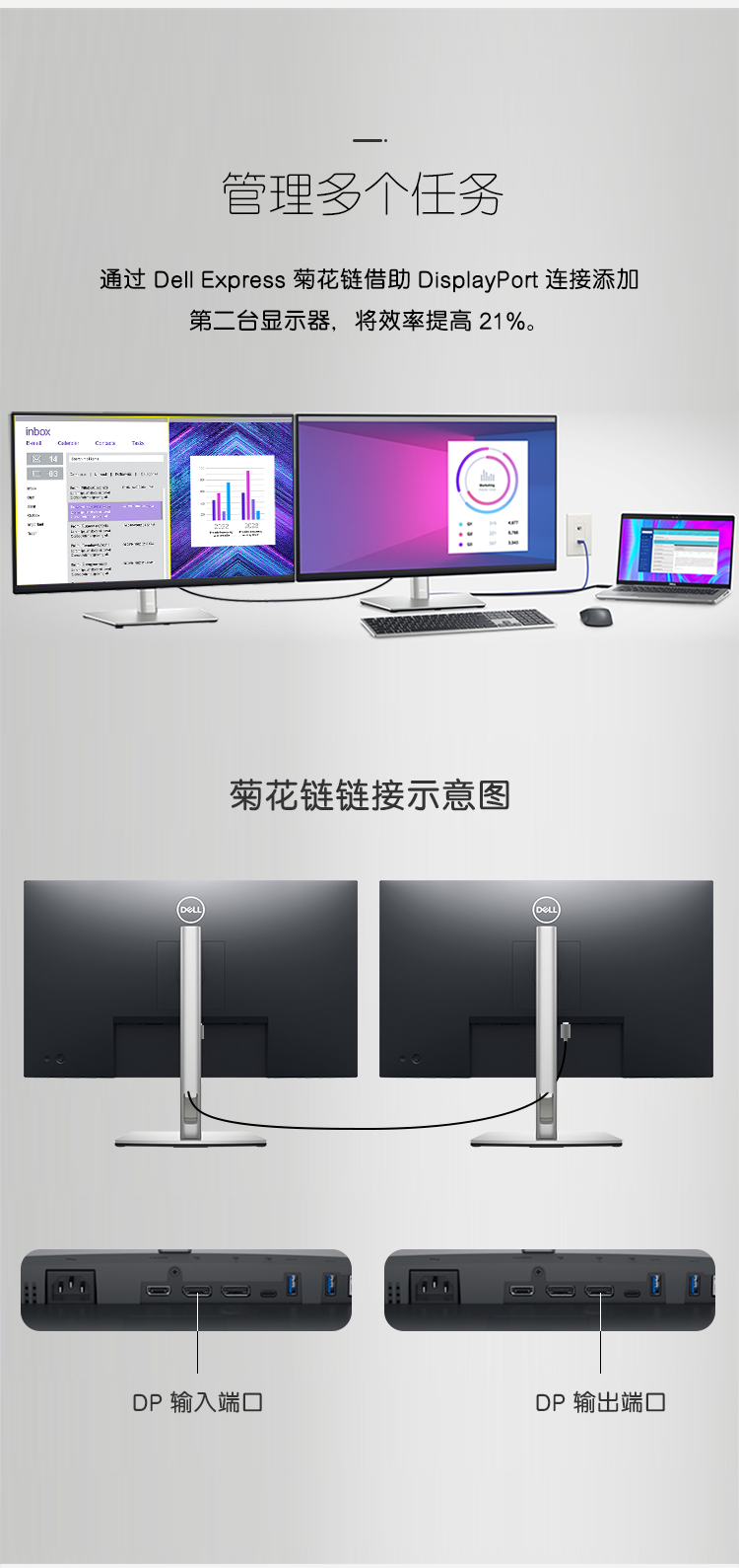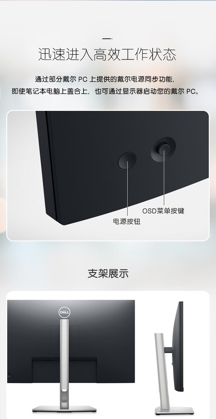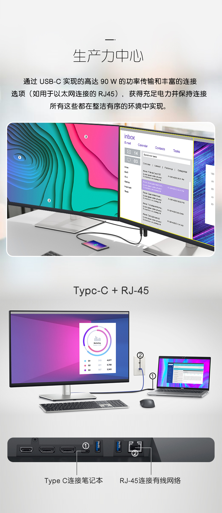 戴尔(DELL)31.5英寸 2K显示器 IPS 防蓝光 Type-C 90W反向充电 旋转升降支架 电脑显示屏 P3223DE 自营