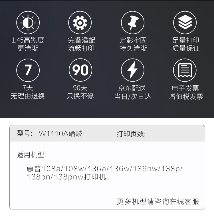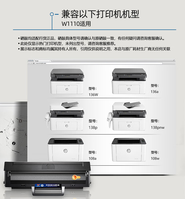 YFHC 110A硒鼓 W1110A超大容量易加粉硒鼓带芯片 适用于惠普HP108a 108w 136a 136w 136nw 138p 138pn 138pnw 5000页 自营