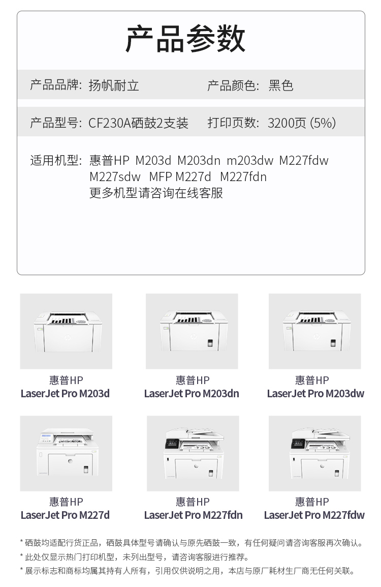 YFHC适用于惠普CF230A硒鼓hp30A粉盒M203d M203dn M203dw M227fdn M227fdw进口碳粉打印机墨盒带芯片2支装 自营