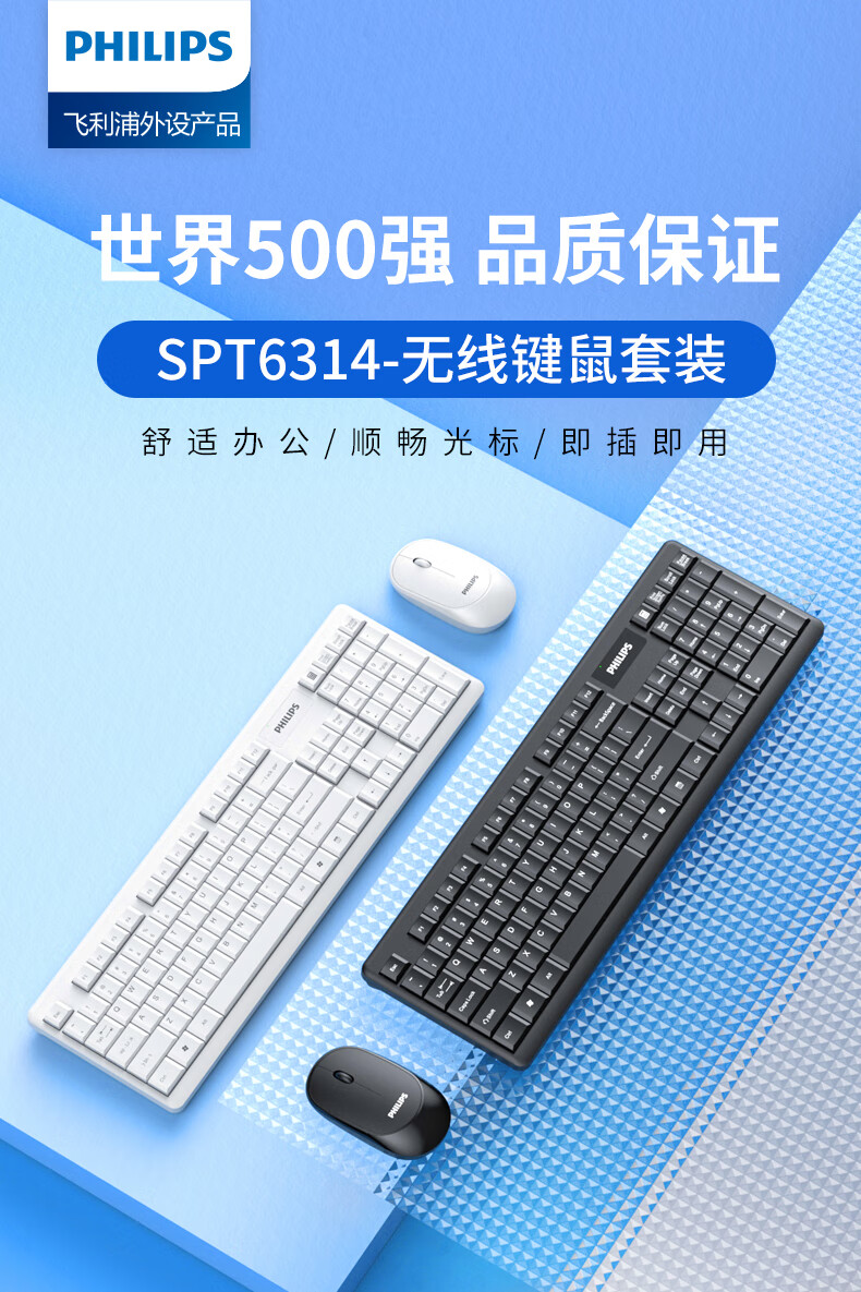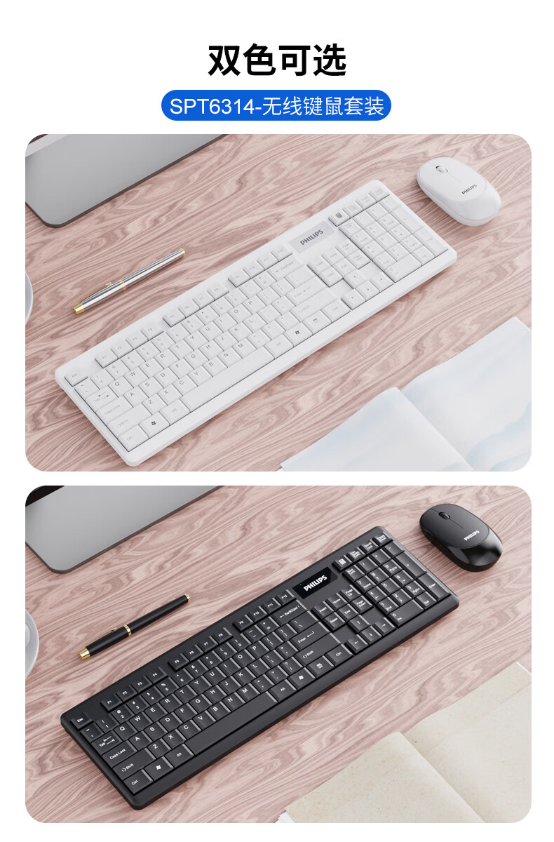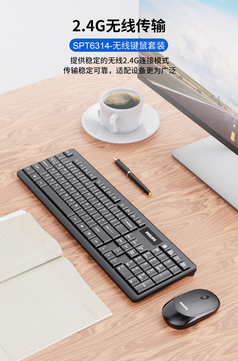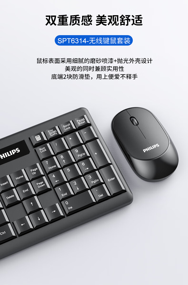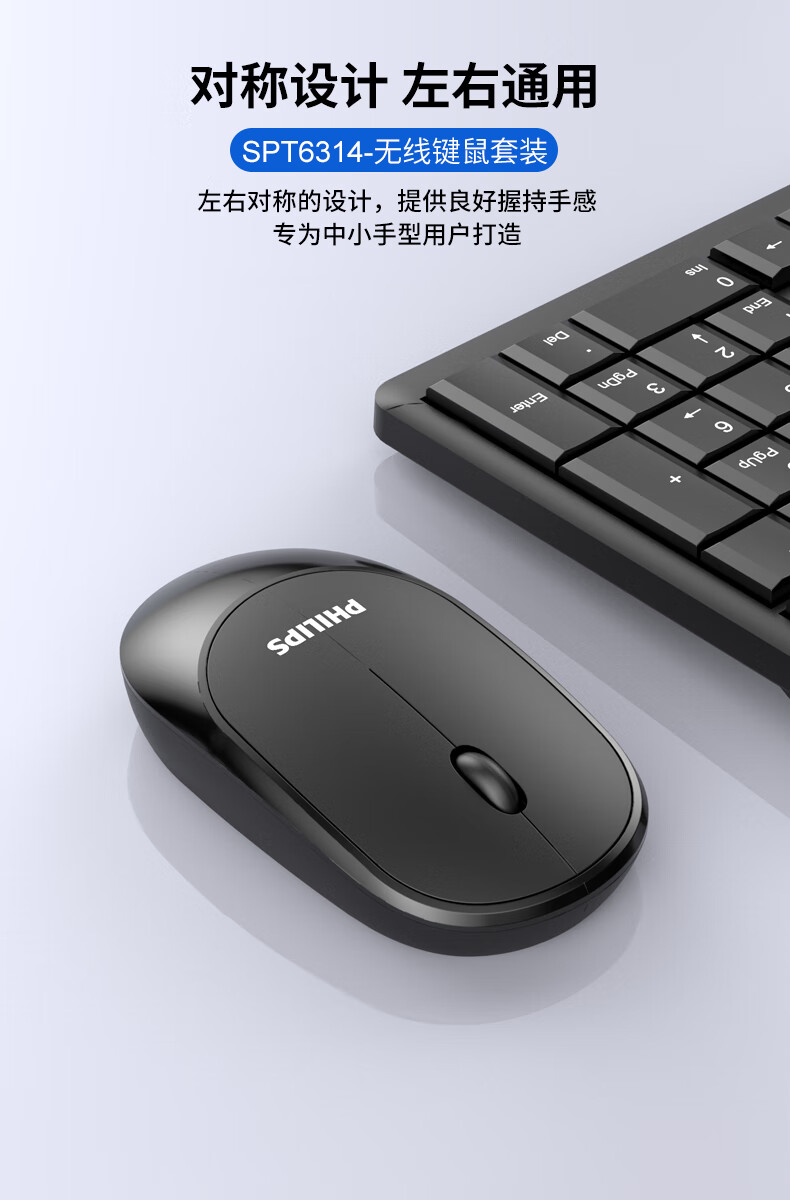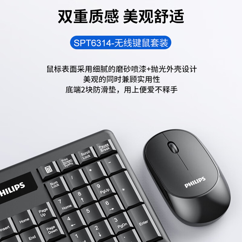 飞利浦(PHILIPS)SPT6314无线键盘鼠标套装笔记本家用台式电脑 商务办公鼠标键盘套装 自营
