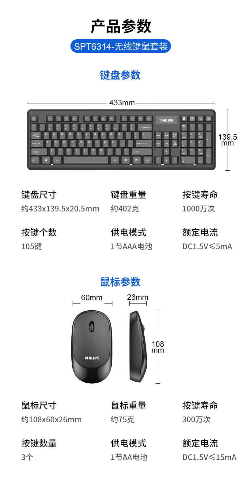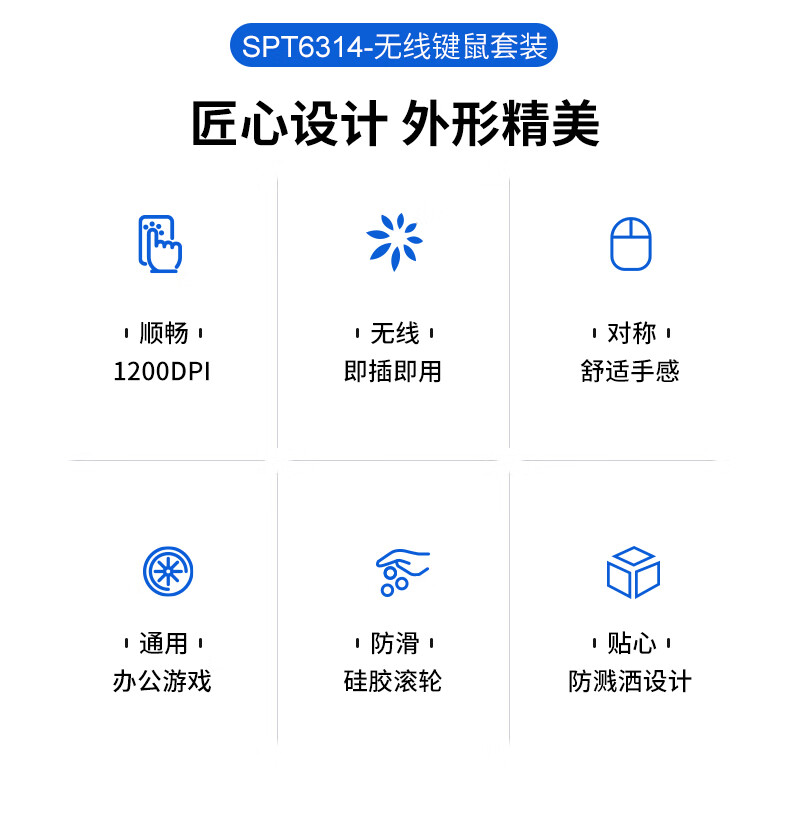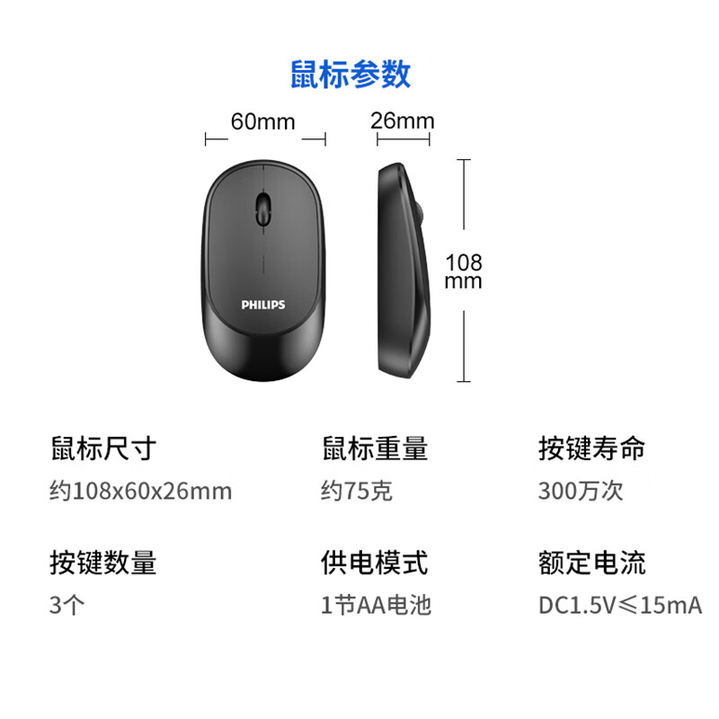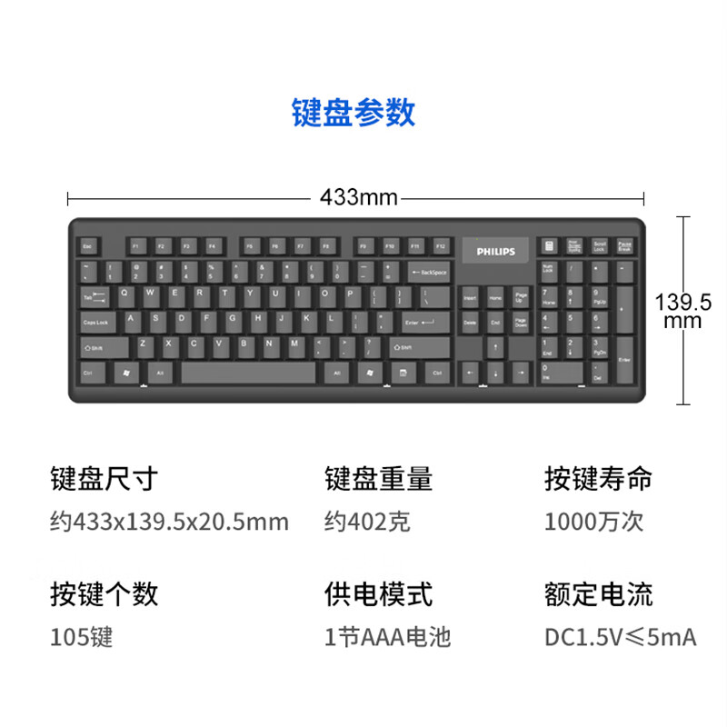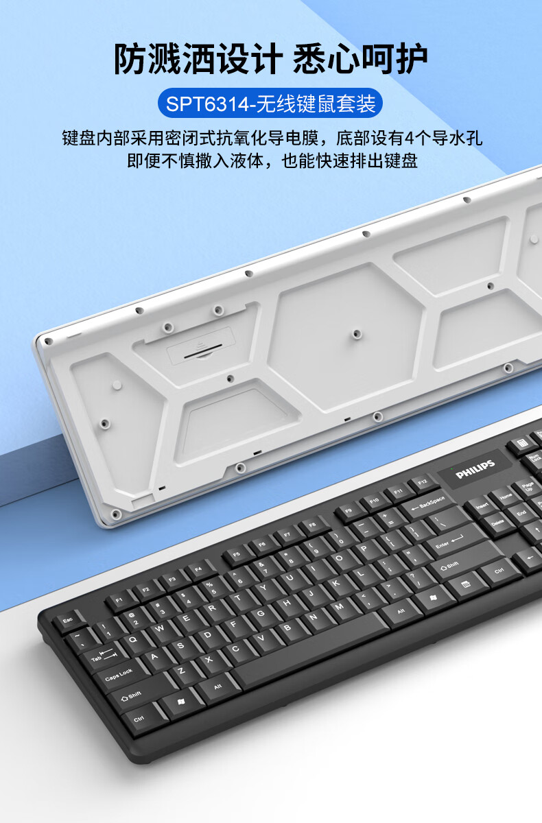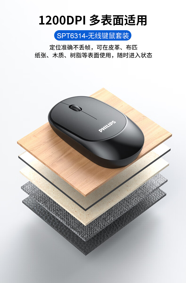 飞利浦(PHILIPS)SPT6314无线键盘鼠标套装笔记本家用台式电脑 商务办公鼠标键盘套装 自营