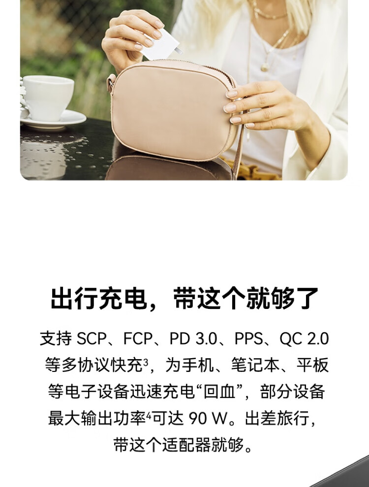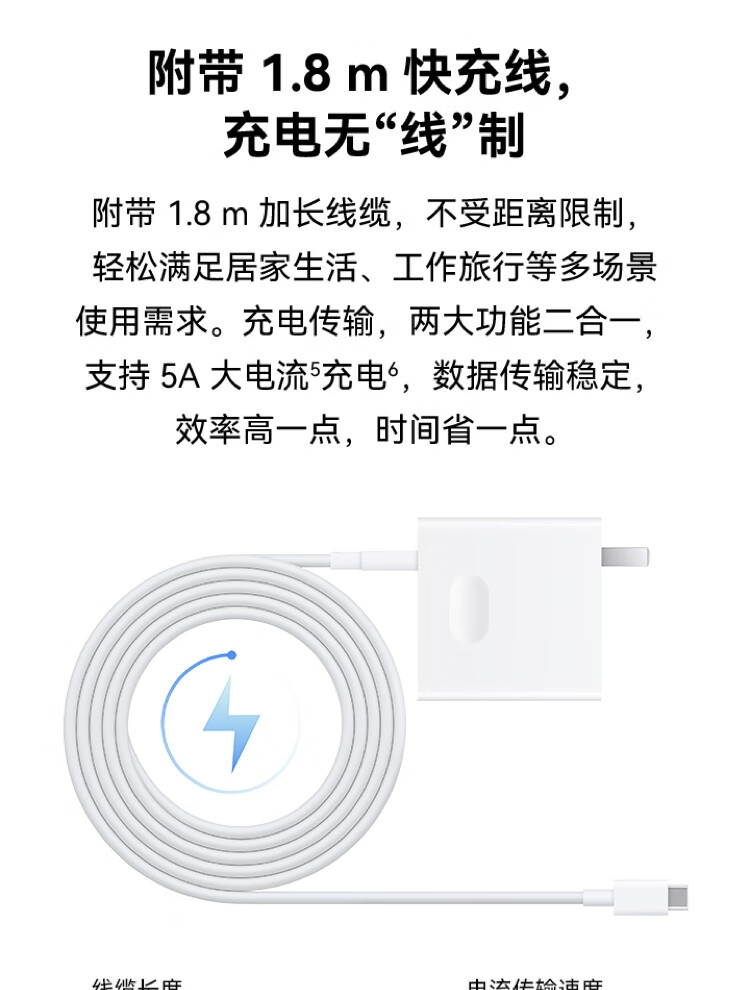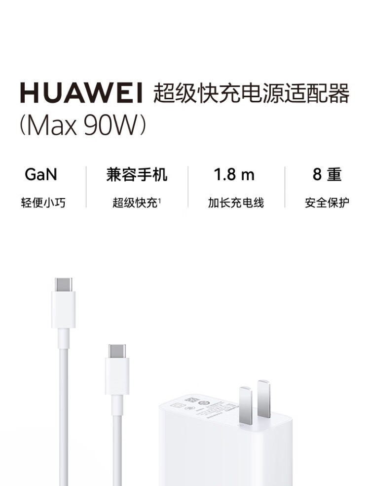 华为超级快充电源适配器90W氮化镓GaN充电器套装 适配MateBook Mate60pro系列笔记本手机平板 1.8米线 自营