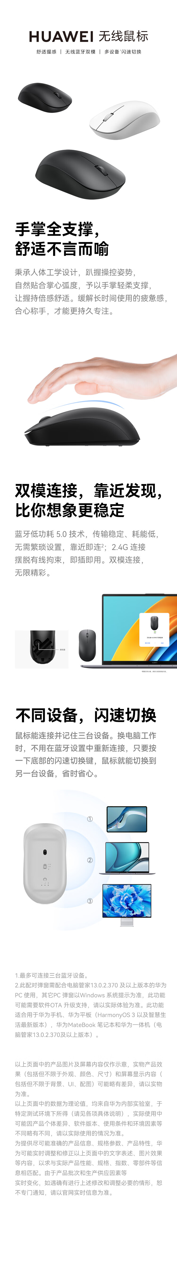 华为HUAWEI 无线鼠标 双模办公 3设备切换 靠近发现 人体工学 黑色 自营