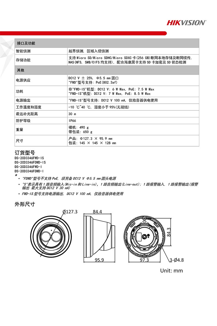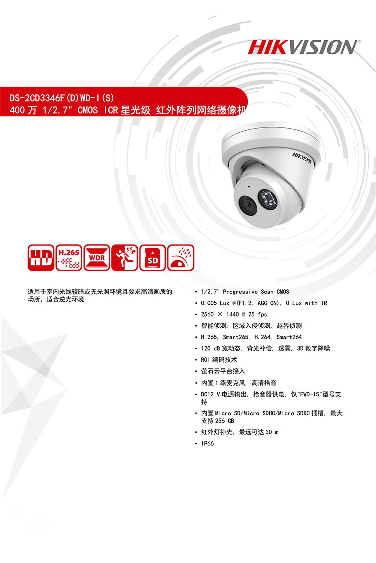 海康威视 400万像素星光 海螺型网络摄像机 DS-2CD3346FWD-IS 4mm(国内标配) 自营