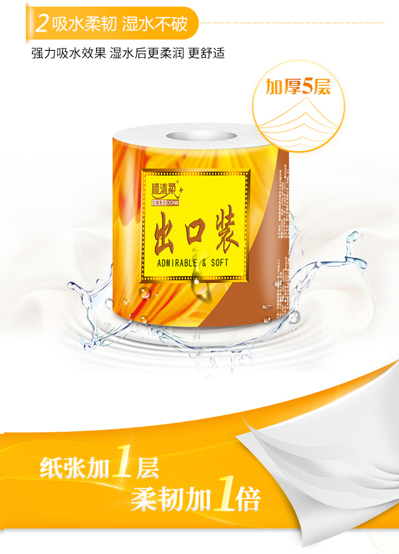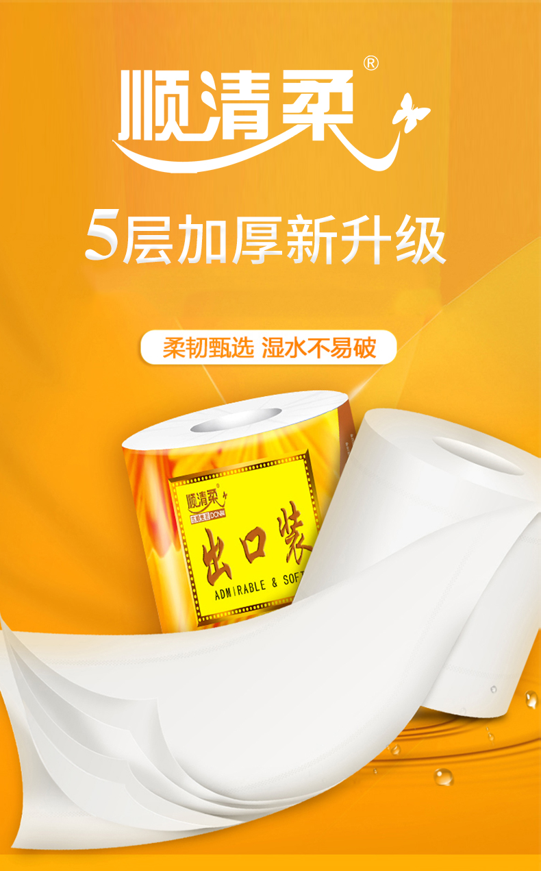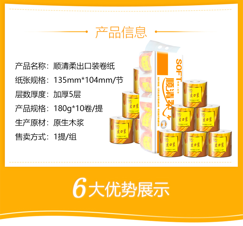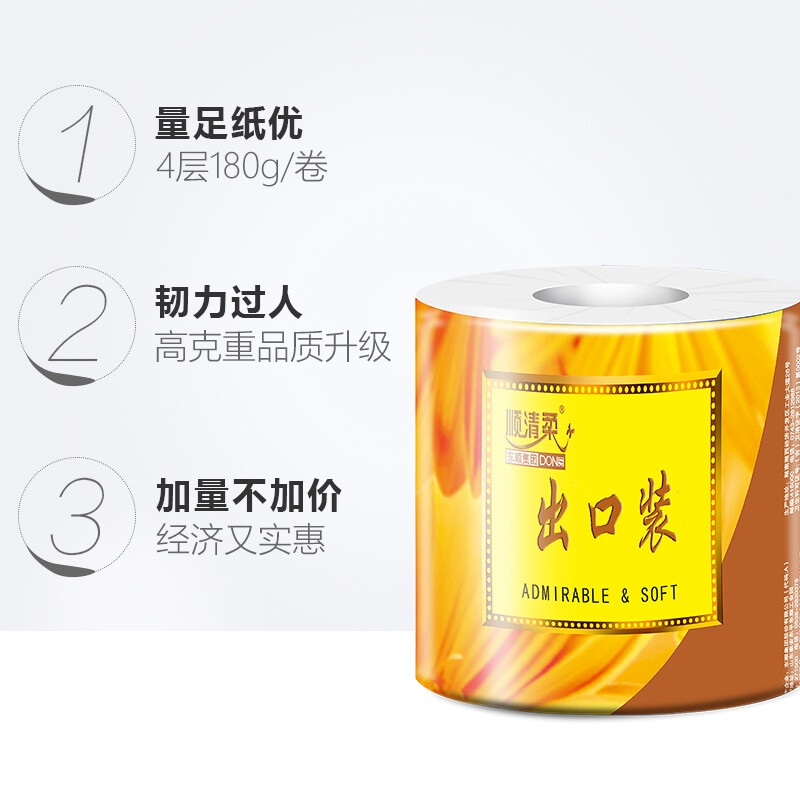 顺清柔 卫生纸 出口装5层180g有芯卷纸*10卷(新老包装随机发货) 自营
