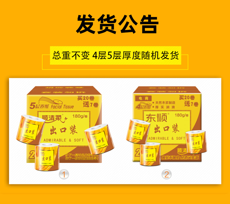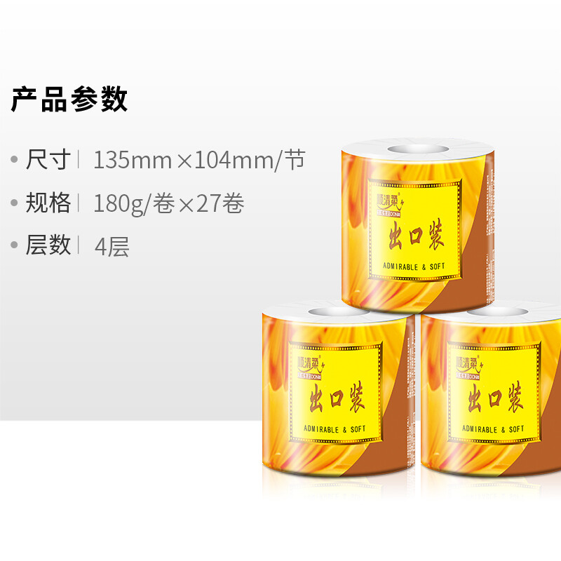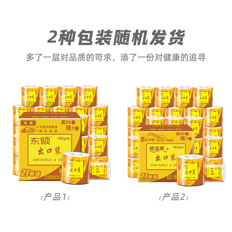 顺清柔卫生纸 出口装5层180g*27卷有芯卷纸易溶解(整箱销售) 自营