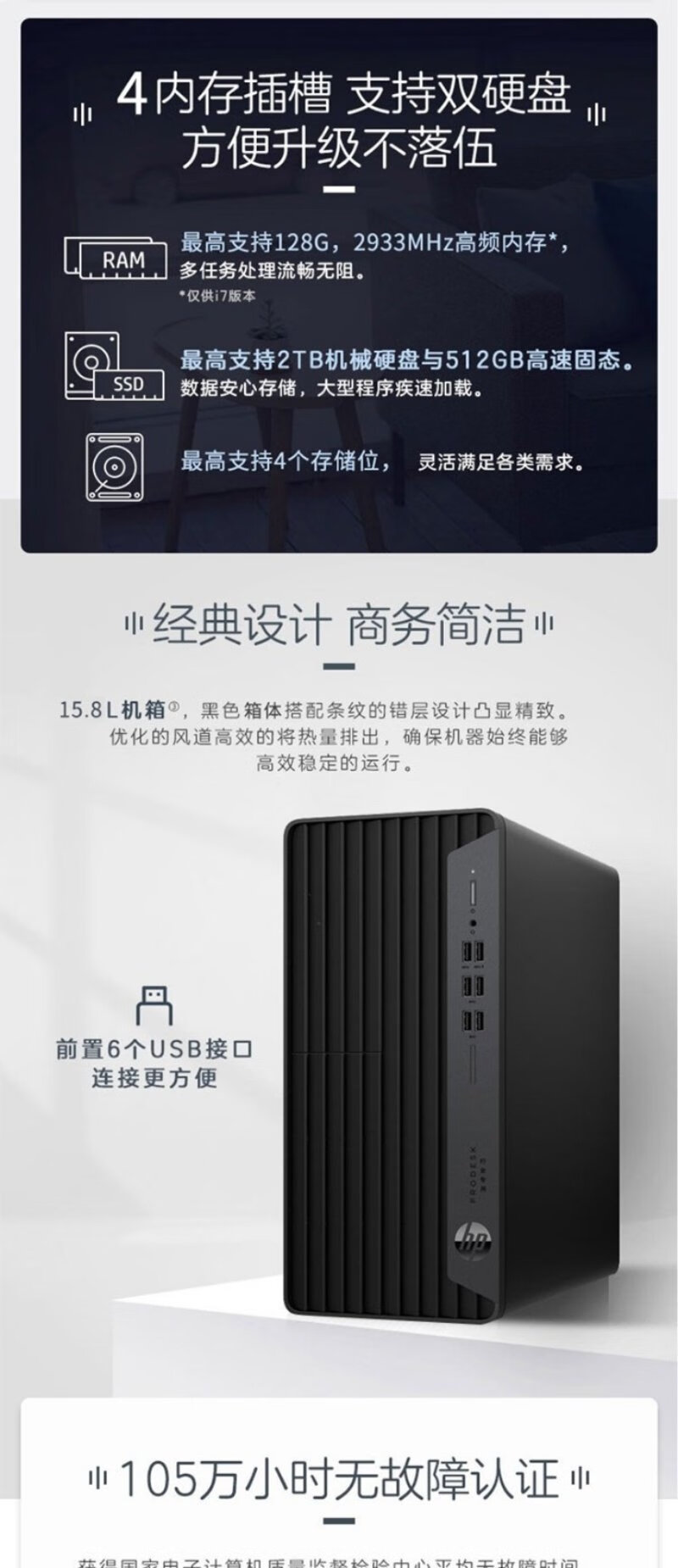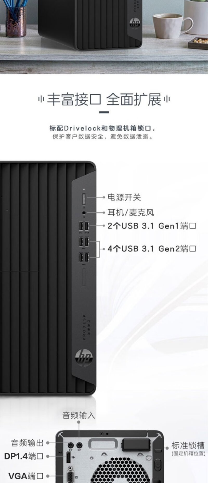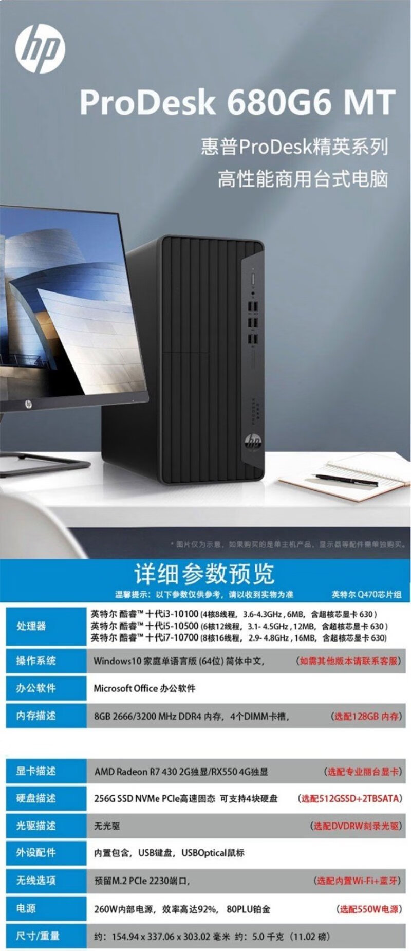 惠普(HP)商用台式机ProDesk 680 G6 MT企业商用办公台式机单主机 i5-10500/8+256G/730-2G独显 键盘+鼠标 自营