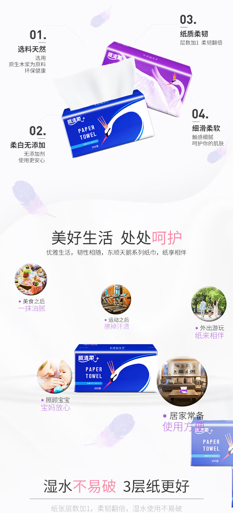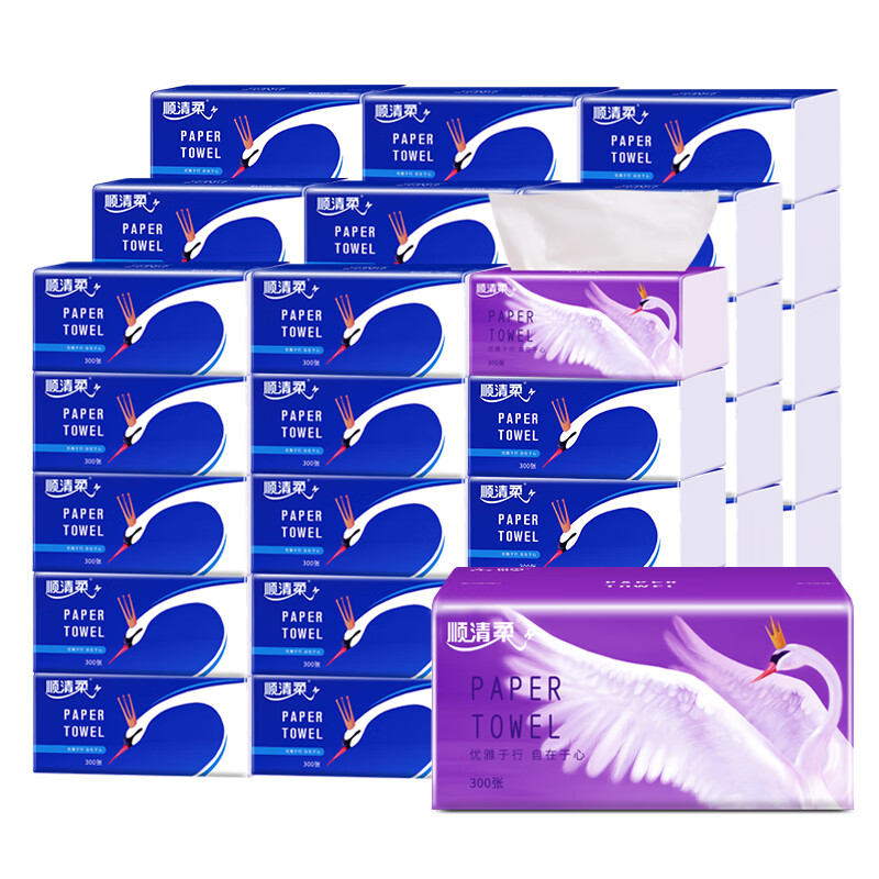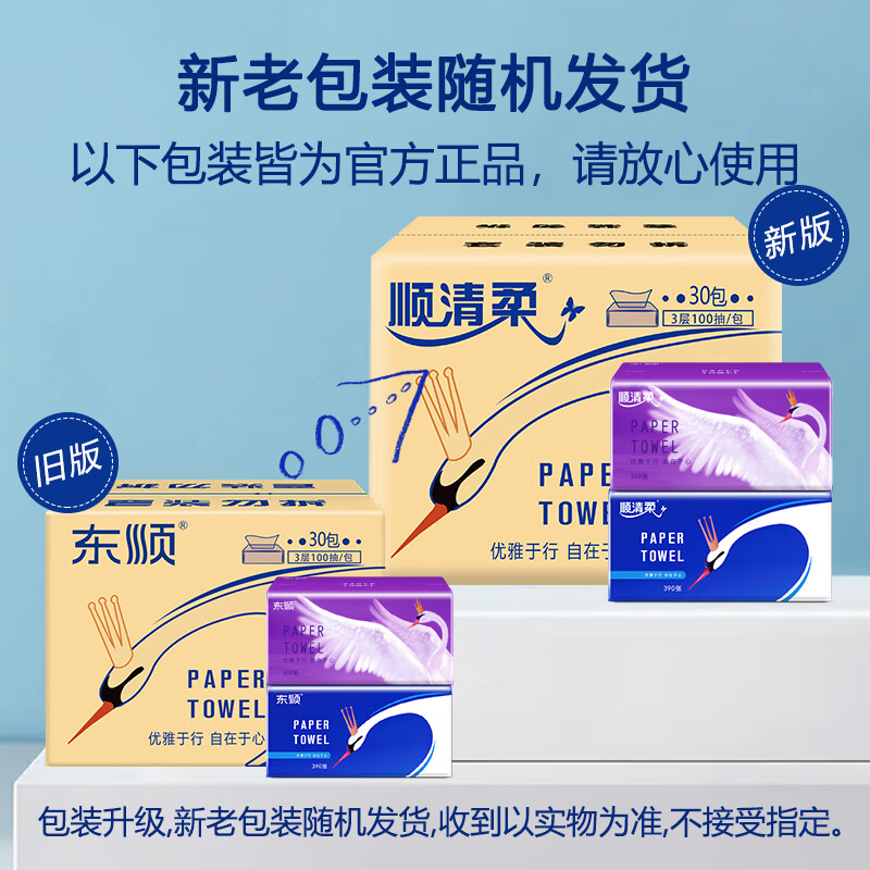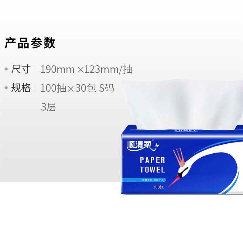 顺清柔 抽纸软抽 天鹅倍柔3层100抽*30包抽取式(整箱销售) 自营