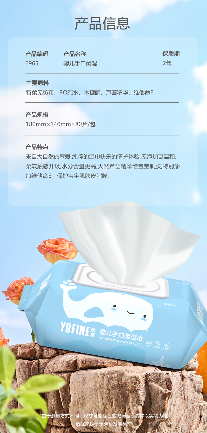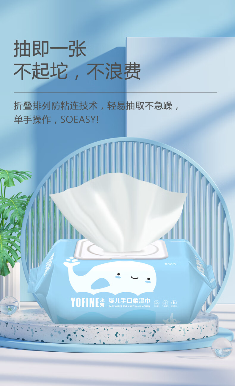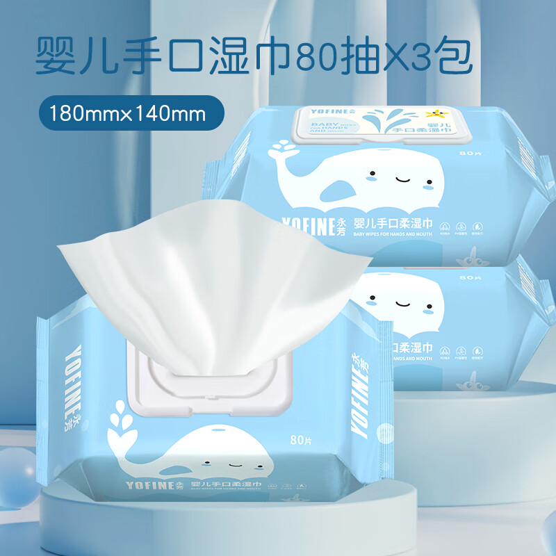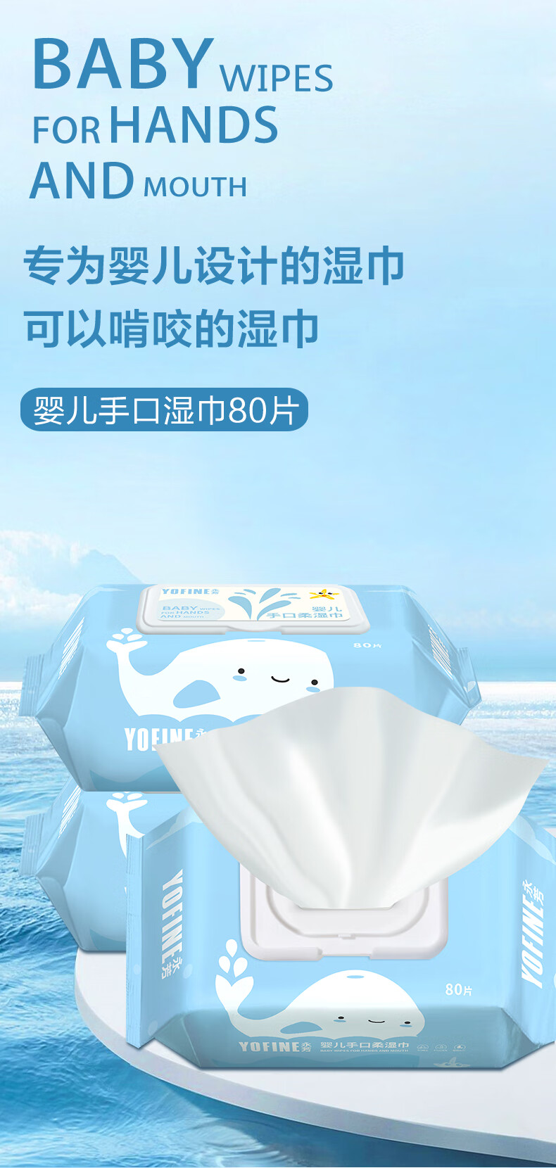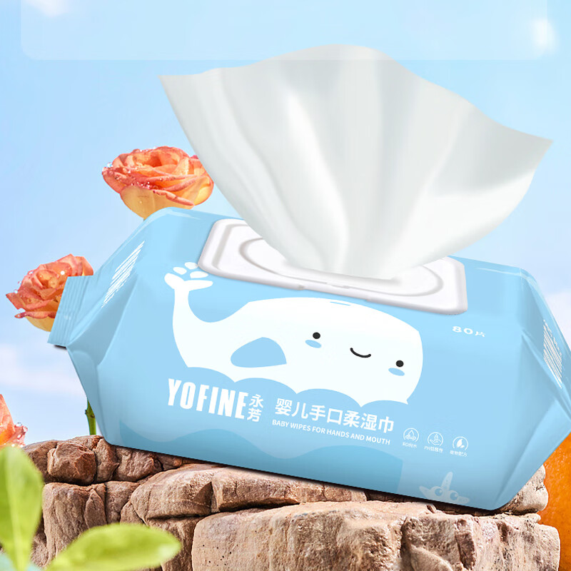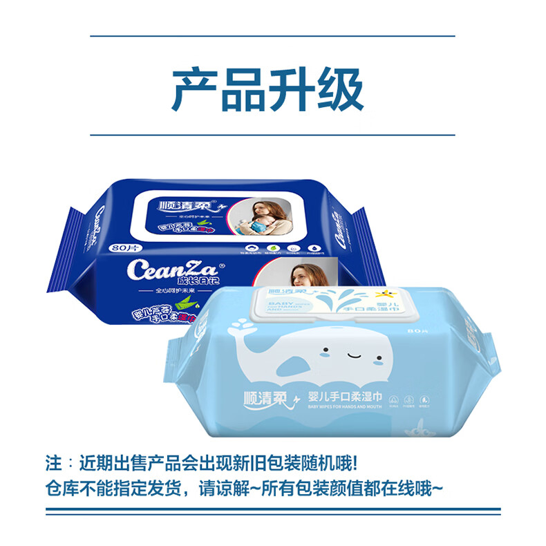 顺清柔婴儿湿巾 婴儿手口柔湿纸巾 带盖保湿宝宝湿巾80片/包 自营