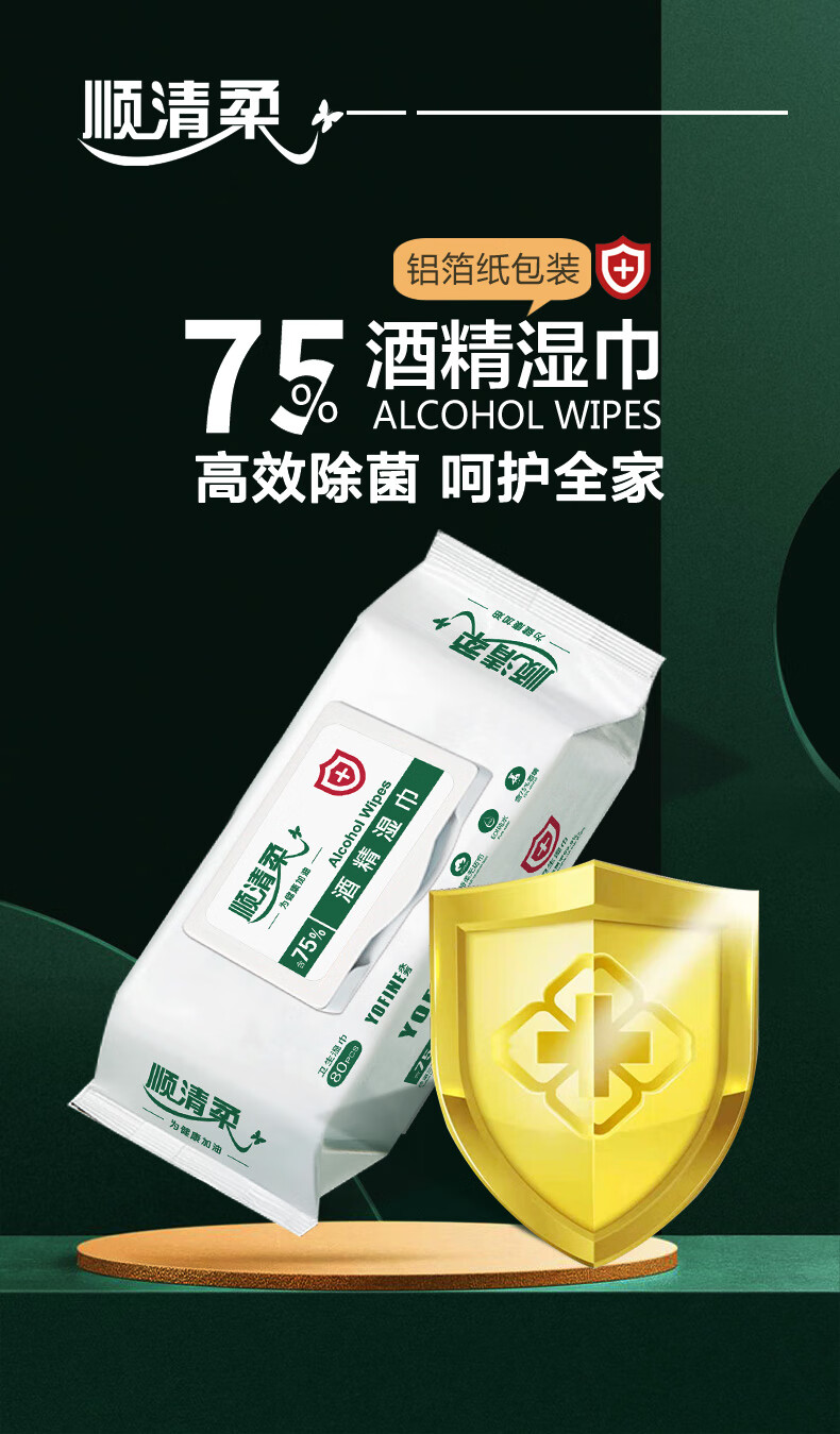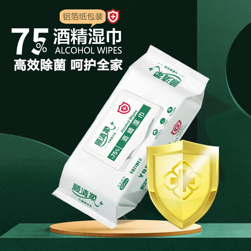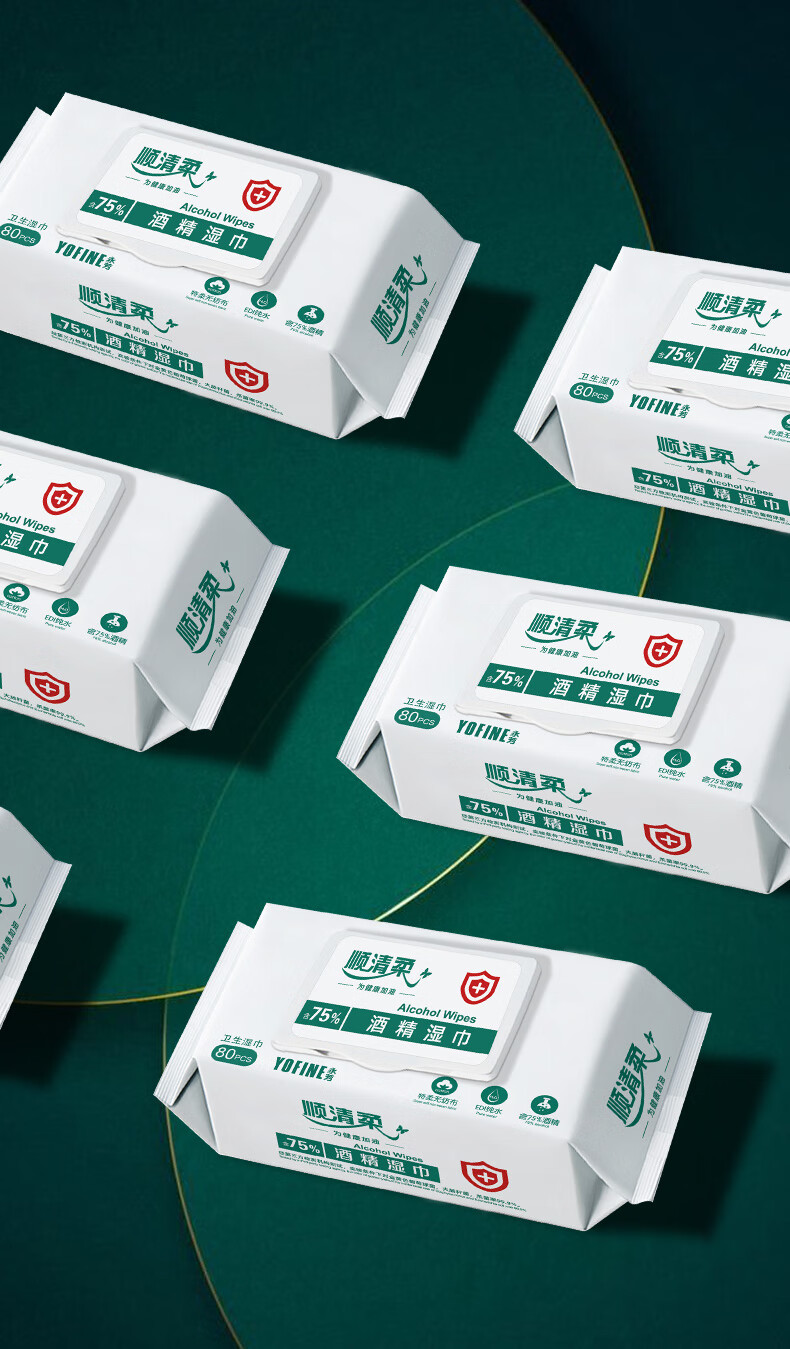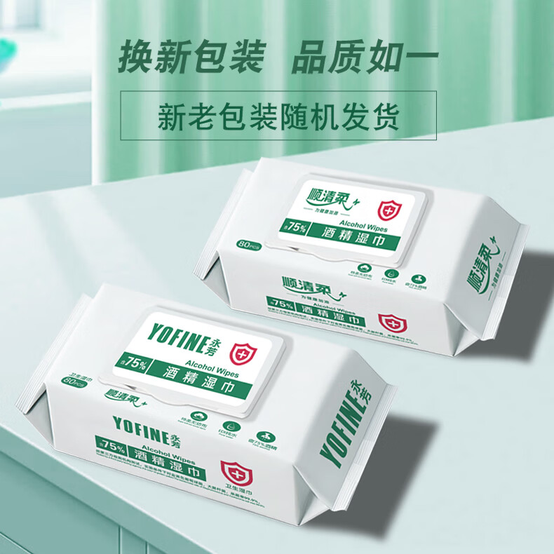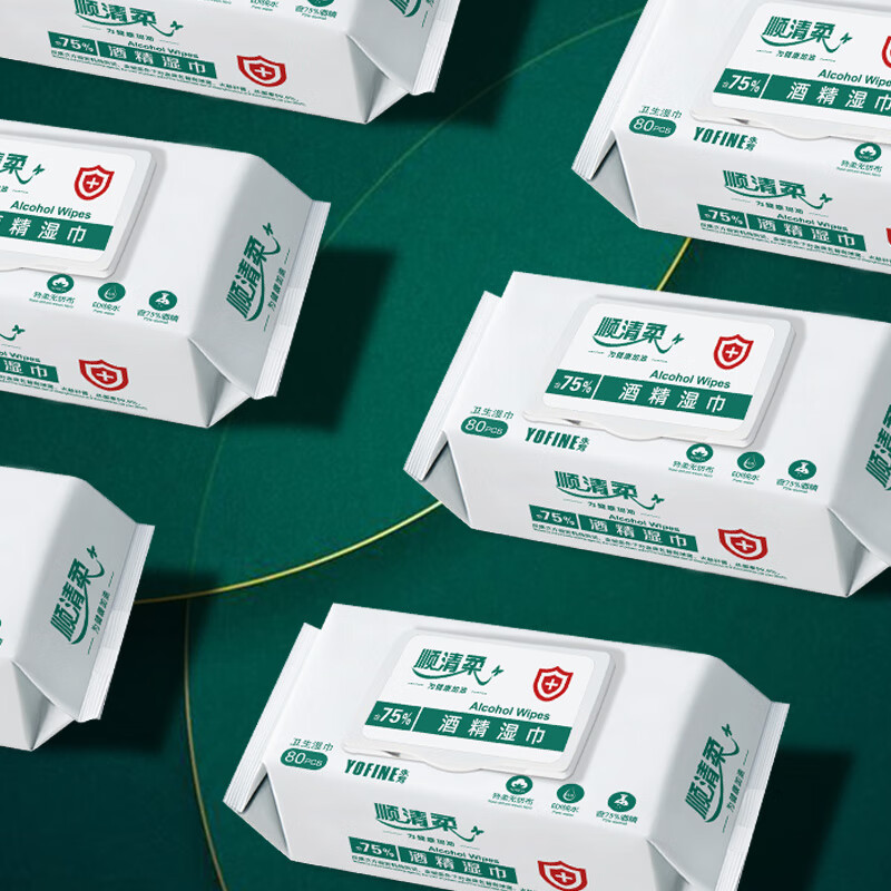 顺清柔湿巾75%酒精湿巾80片*4包 一次性清洁湿纸巾(整箱销售) 自营