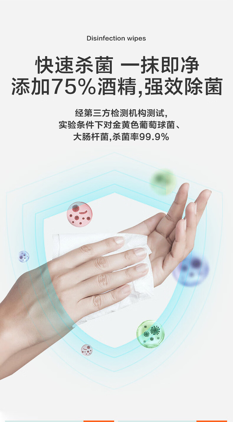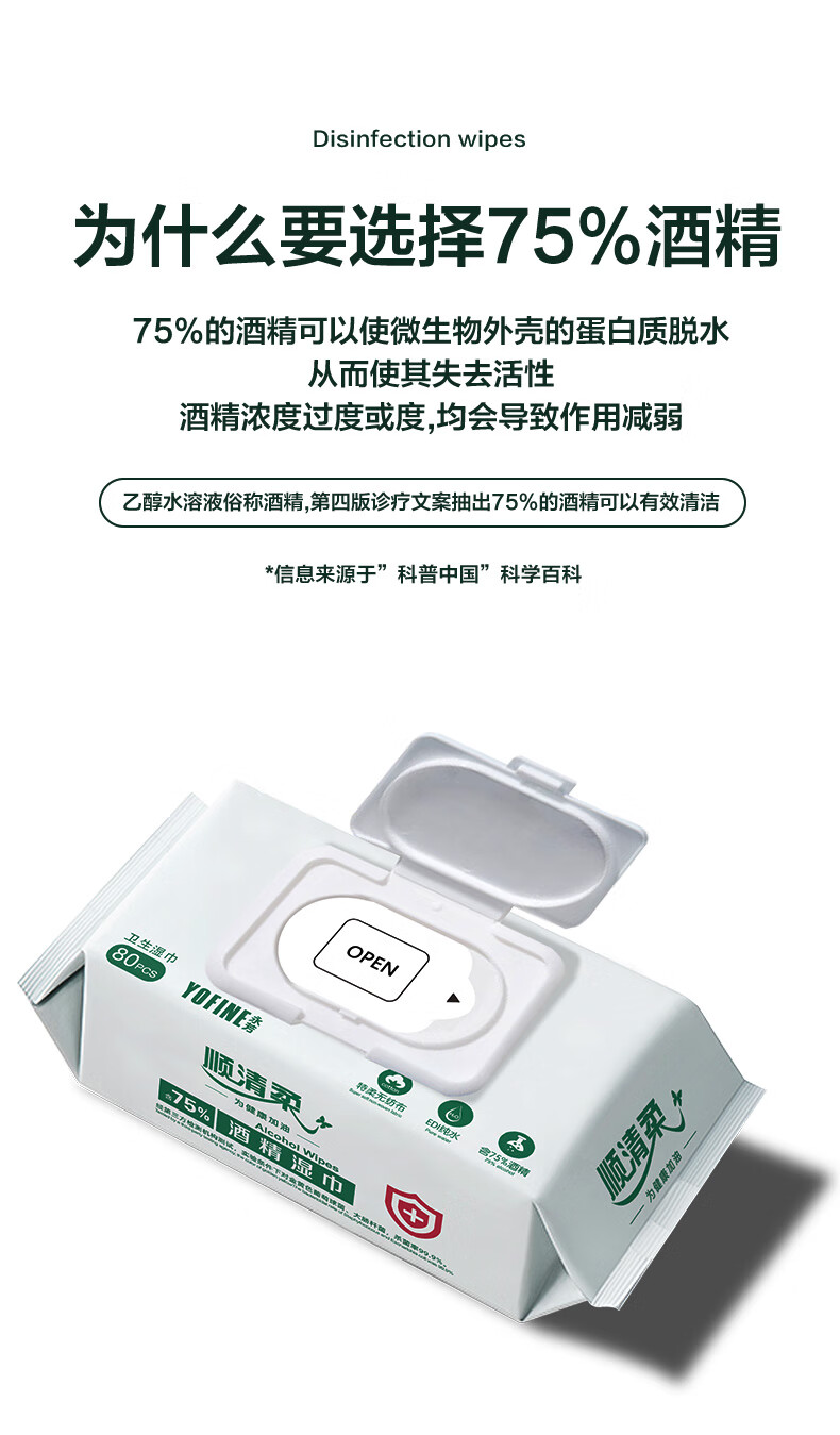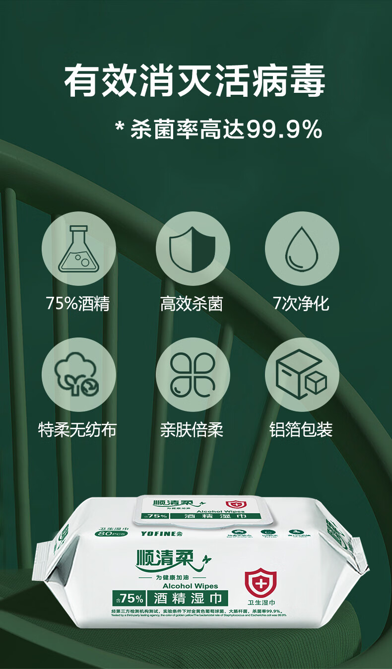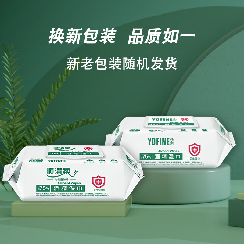 顺清柔湿巾75%酒精湿巾80片*4包 一次性清洁湿纸巾(整箱销售) 自营